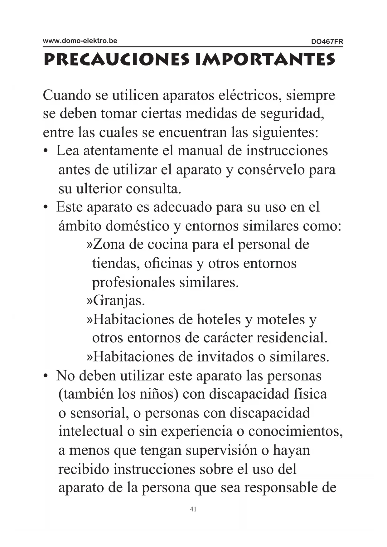 - No deben utiliser este aparato las personas (otemporado los niños) con descapacidad fisica o sensorial, o personas con descapacidad intelectual o sin experiencia o conocimientos, a menos que tengan supervisión o hayan recibido instrucciones sobre el uso del aparato de la persona que sea responsable de