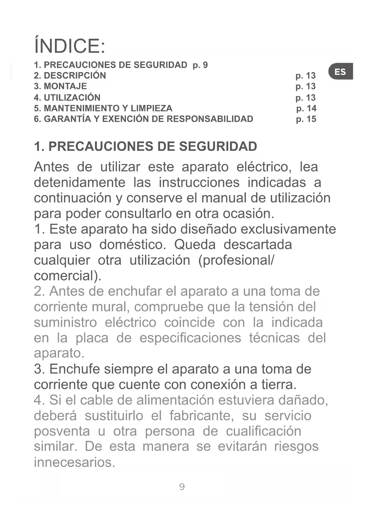 1. PRECAUCIONES DE SEGURIDAD p. 9