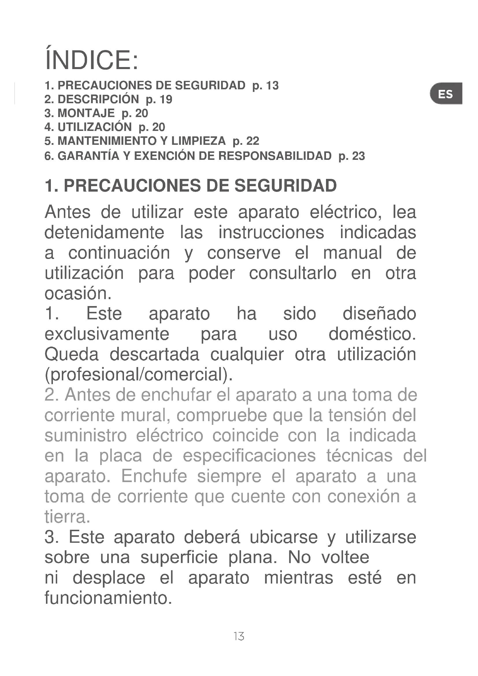 1. PRECAUCIONES DE SEGURIDAD p. 13