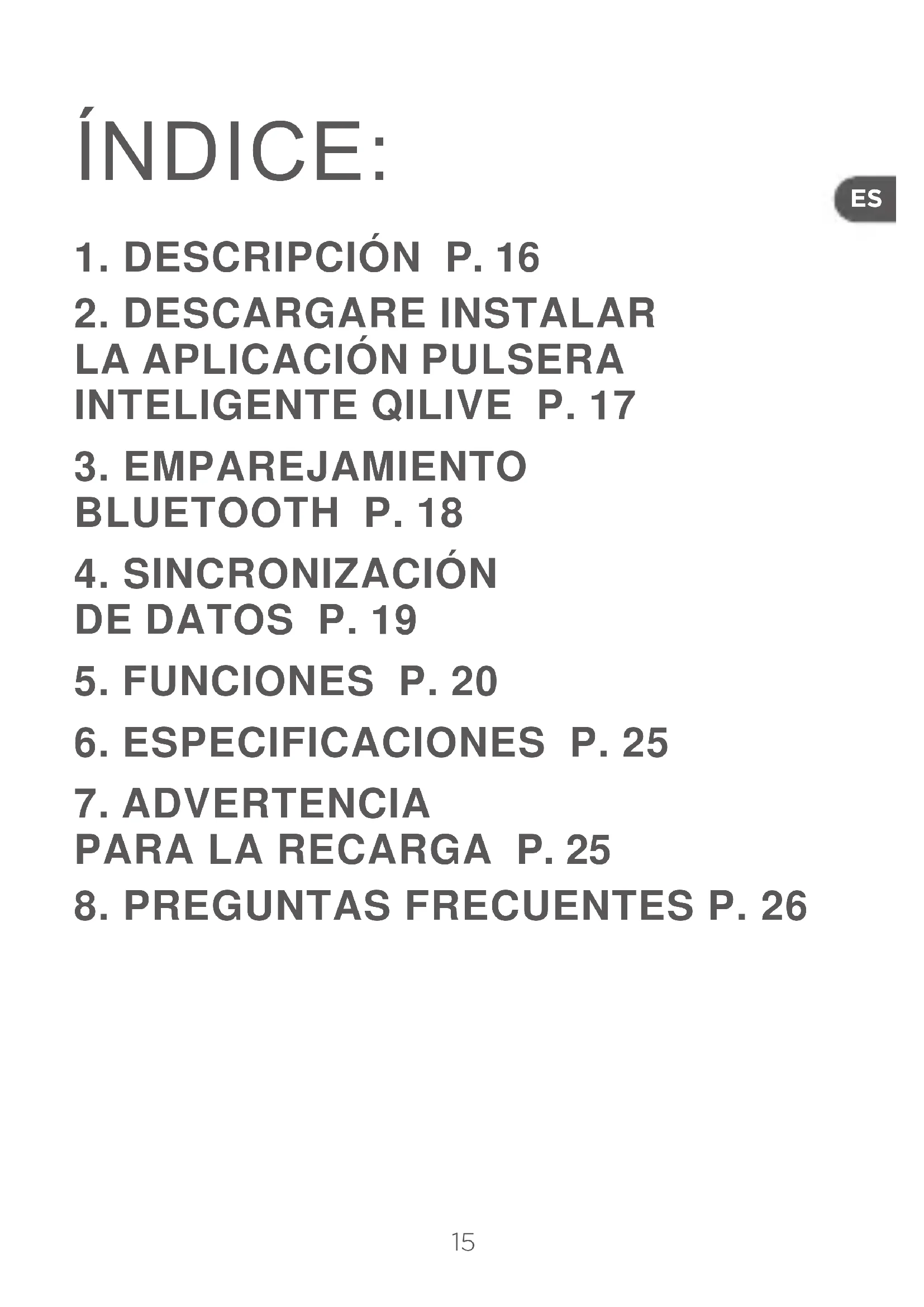 La pulsera inteligente Qilive tiene una pantalla táctil, un área táctil como se muestra en la imagen y una interfaz de funciones con interruptores táctiles de luz. La pulsera inteligente Qilive dispone de la función de despertador. Mueve la mano para vericarla. Al recibir la pulsera, cárgala. Luego, la pulsera se encenderá.17