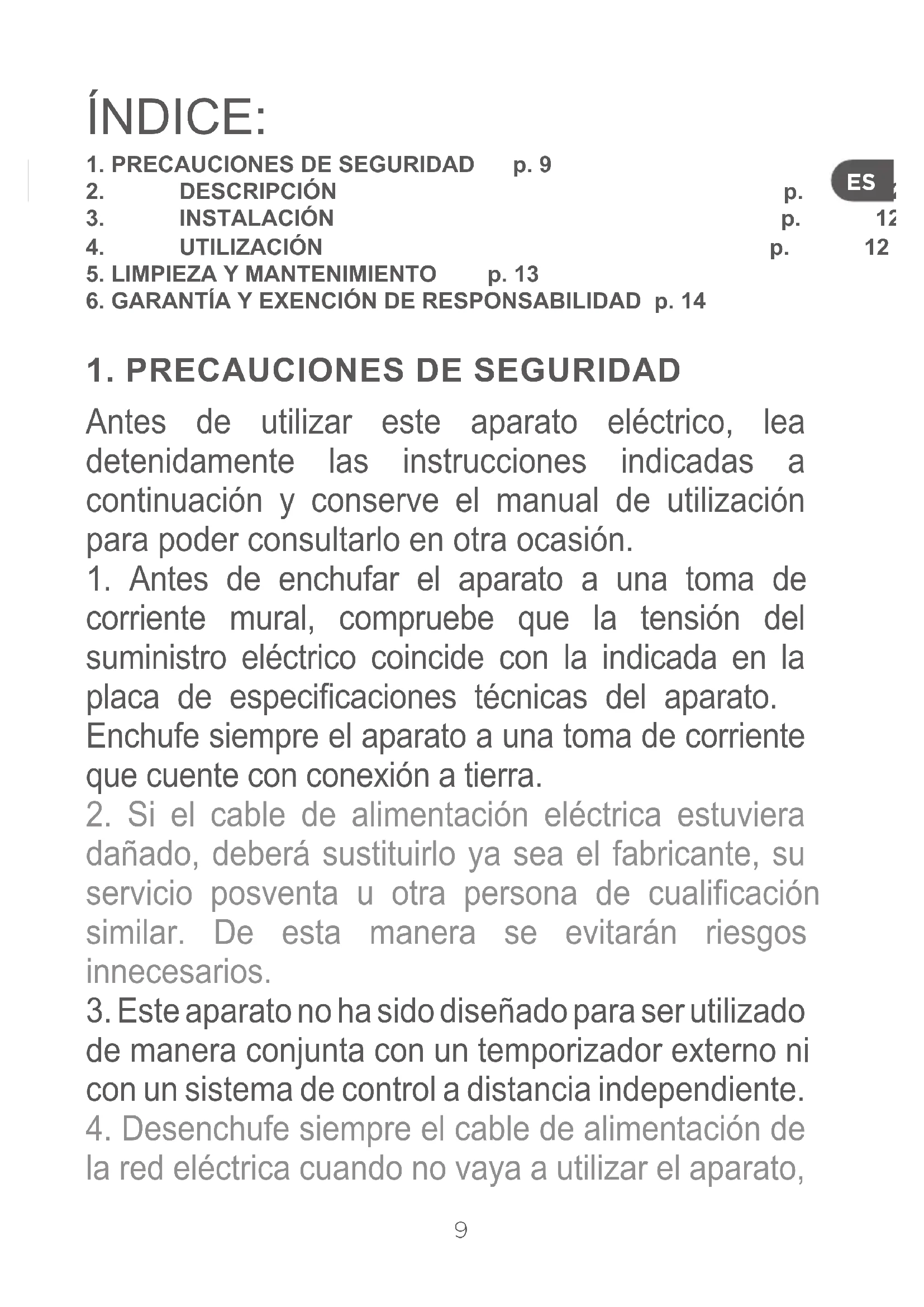 1. PRECAUCIONES DE SEGURIDAD p. 9