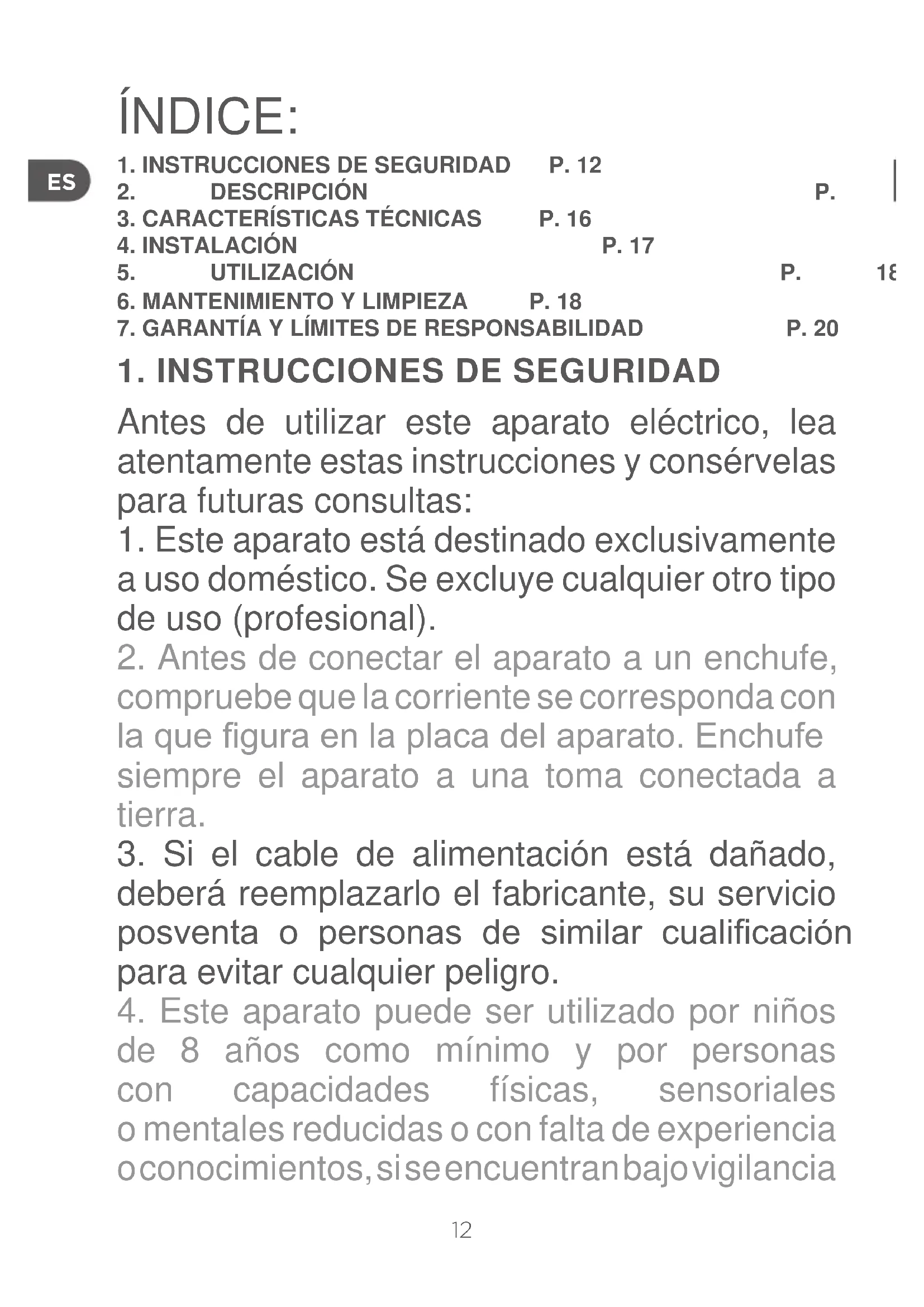 1. INSTRUCCIONES DE SEGURIDAD P. 12