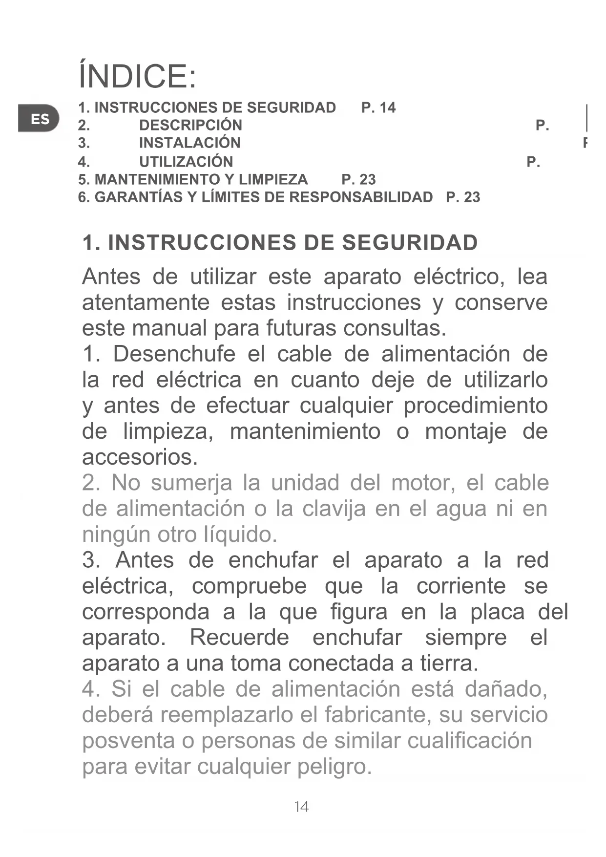1. INSTRUCCIONES DE SEGURIDAD P. 14