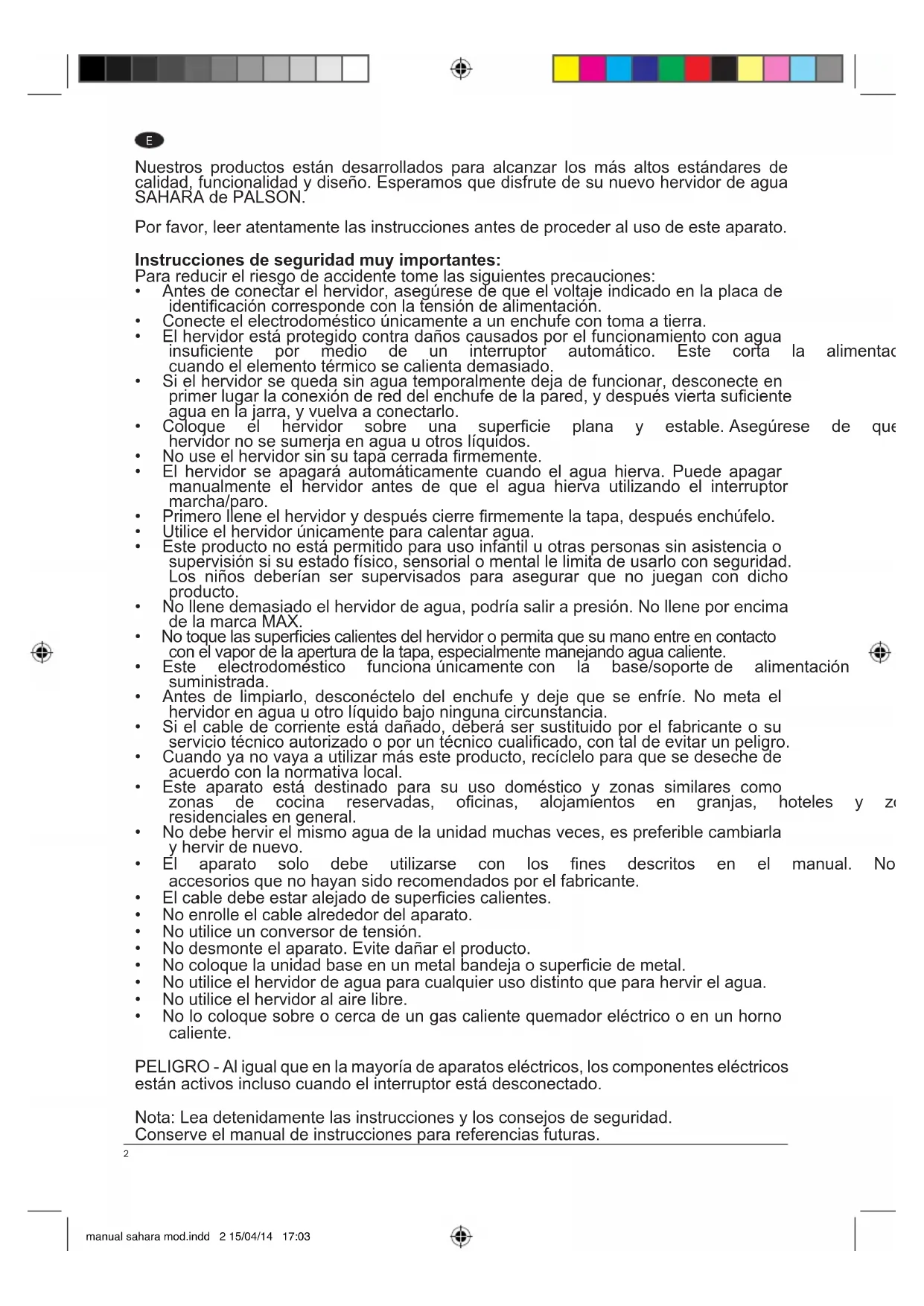 Nuestros productos estan desarrollados para alcanzar los mas altos estandares de calidad, funcionalidad y diseño. Esperamos que disfrute de su nuevo hervidor de agua SAHARA de PALSON.