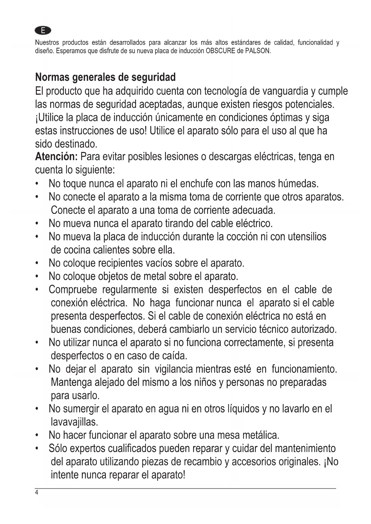 El producto que ha adquirido cuenta con tecnología de vanguardia y cumple las normas de seguridad aceptadas, aunque existen riesgos potenciales. ¡Utilice la placa de inducción únicamente en condiciones óptimas y siga estas instrucciones de uso! Utilice el aparato sólo para el uso al que ha sido destinado.