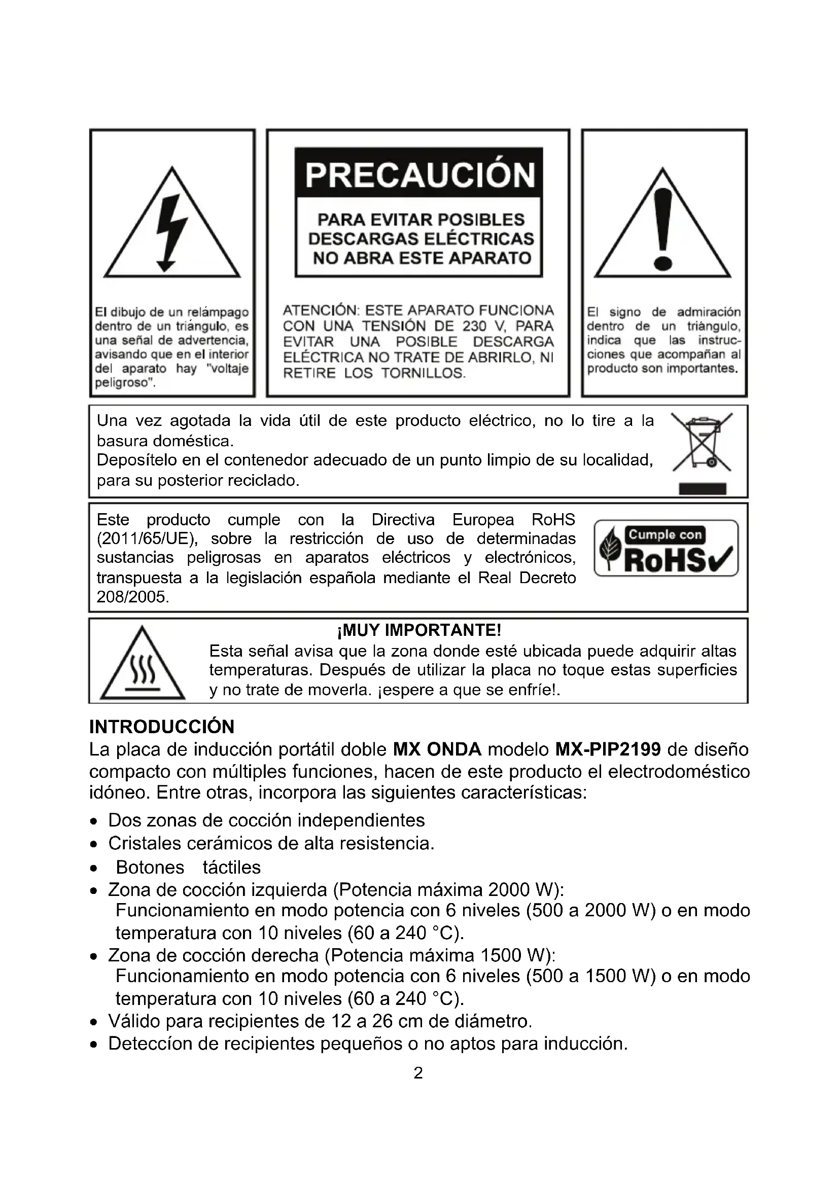 Encuentra gratis el manual del aparato MXPIP2199 Mx Onda en formato PDF.