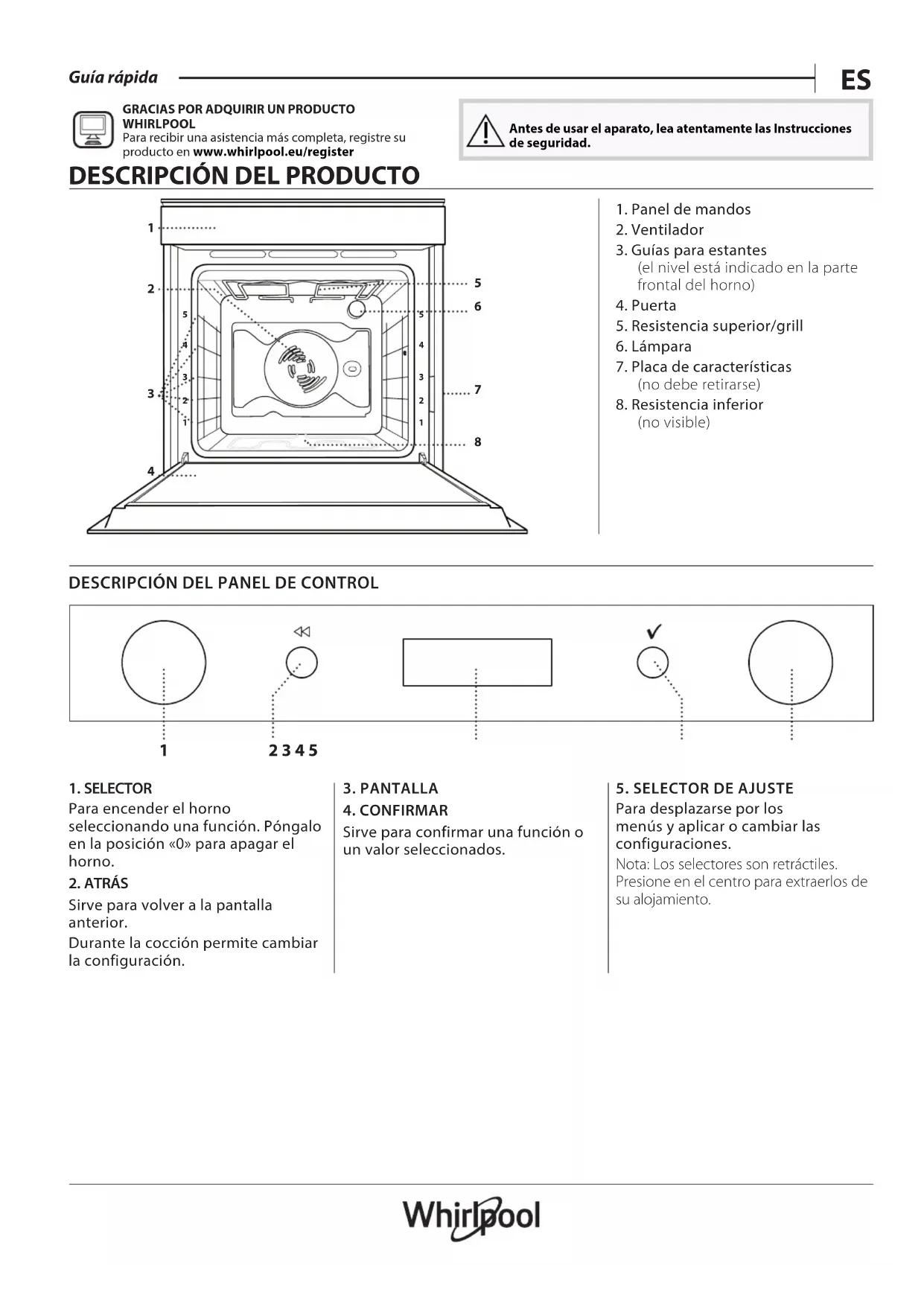 WHIRLPOOL Para recibir una asistencia más completa, registre su producto en www . whirlpool . eu/ register Antes de usar el aparato, lea atentamente las Instrucciones de seguridad.