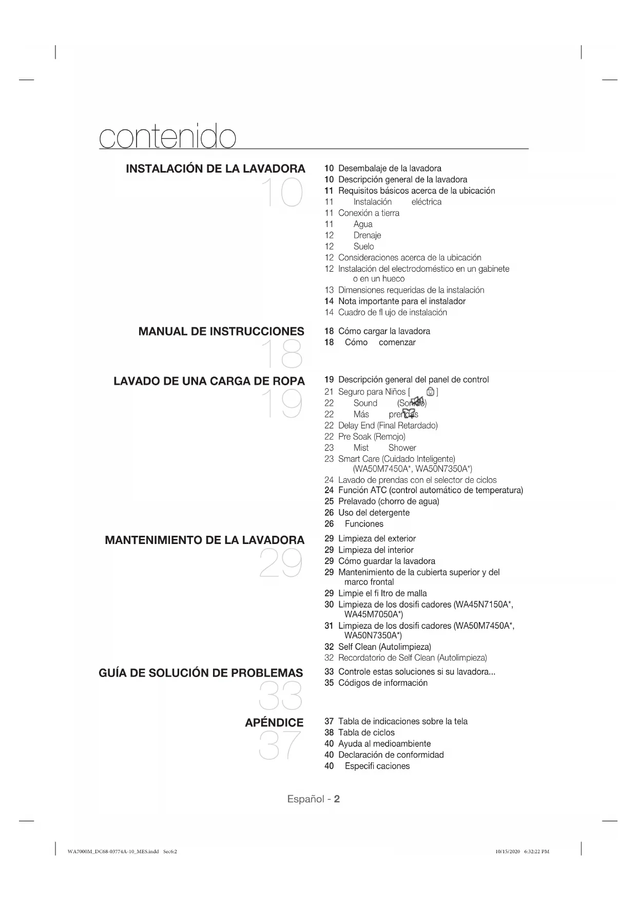 33 Controle estas soluciones si su lavadora... 35 Códigos de información APÉNDICE