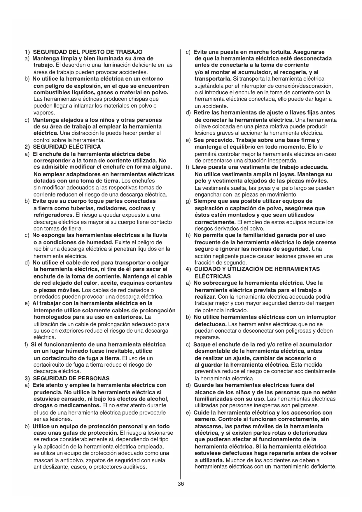 a) Esté atento y emplee la herramienta eléctrica con prudencia. No utilice la herramienta eléctrica si estuviese cansado, ni bajo los efectos de alcohol, drogas o medicamentos. El no estar atento durante el uso de una herramienta eléctrica puede provocarle serias lesiones. b) Utilice un equipo de protección personal y en todo caso unas gafas de protección. El riesgo a lesionarse se reduce considerablemente si, dependiendo del tipo y la aplicación de la herramienta eléctrica empleada, se utiliza un equipo de protección adecuado como una mascarilla antipolvo, zapatos de seguridad con suela antideslizante, casco, o protectores auditivos.37