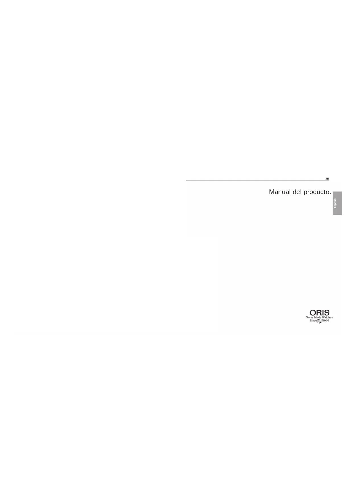 EspañolLe damos la enhorabuena por haber adquirido un reloj Oris y una cordial bienvenida al grupo de aficionados a los relojes mecáni- cos. Porque en el universo de Oris sólo existe la mecánica. Su reloj Oris, que se distingue de los productos de moda dirigidos al gran público por su interior micromecánico fascinante y su exterior elegante sin florituras, encarna los verdaderos valores del arte relojero suizo. Los relojes Oris no sólo son herederos de una larga tradición que se remonta a 1904, también albergan un dispo- sitivo High-Mech de una gran precisión caracterizado por el buen hacer artesanal de nuestros relojeros y desarrollado en colabo- ración con profesionales célebres del mundo de la Fórmula 1, del submarinismo y de la aviación. Y algo que es muy importante hoy en día: el reloj Oris obtiene toda la energía necesaria para su funcionmiento de forma ecológica, sin pila, sólo con sus movimientos o dándole cuerda manualmente. Consulte la web www.oris.ch para obtener más información y una ampliación gratuita de la garantía registrándose en el Club MyOris