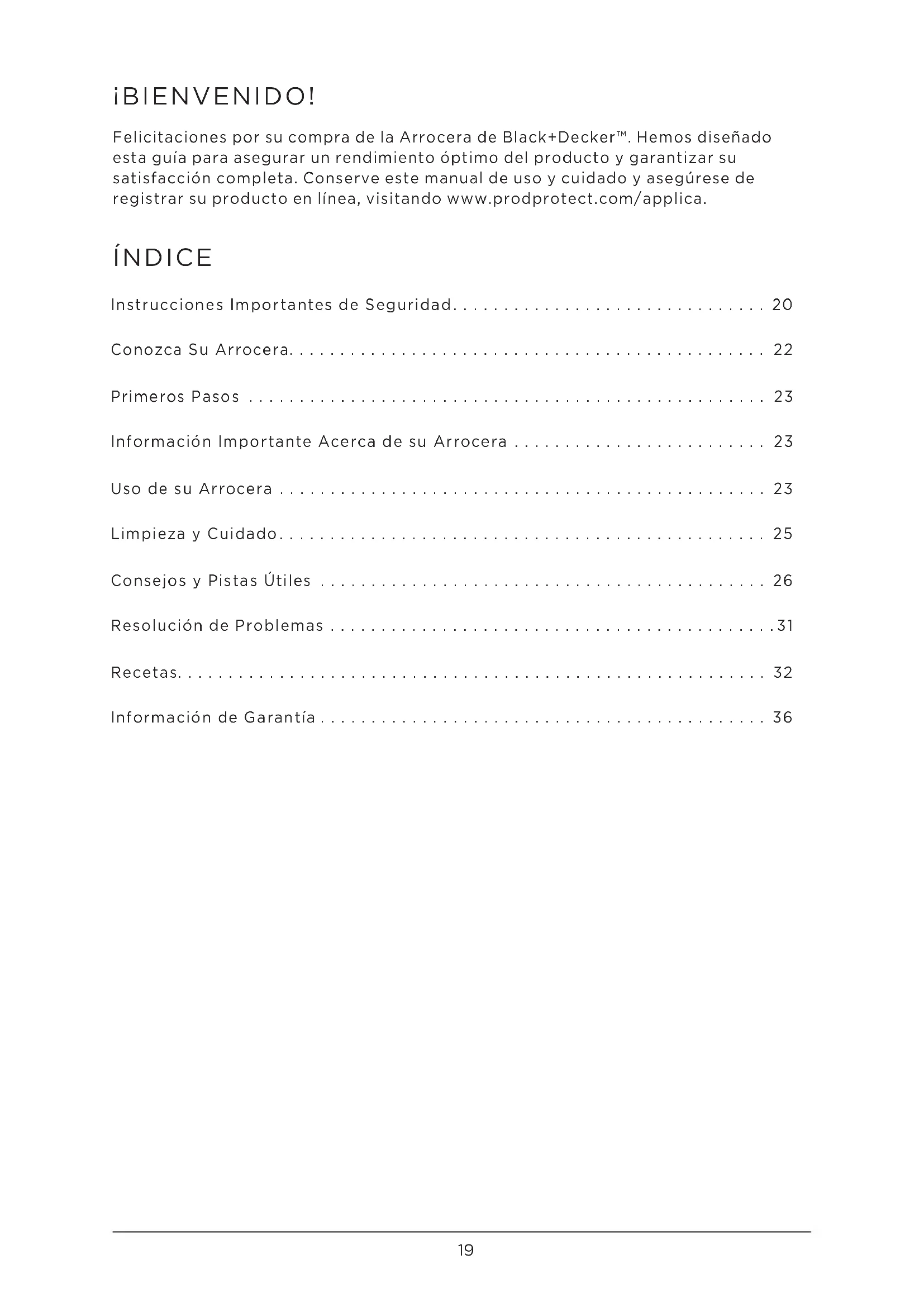 - Por favor, visite www.prodprotect.com/applica para registrar su garantía.