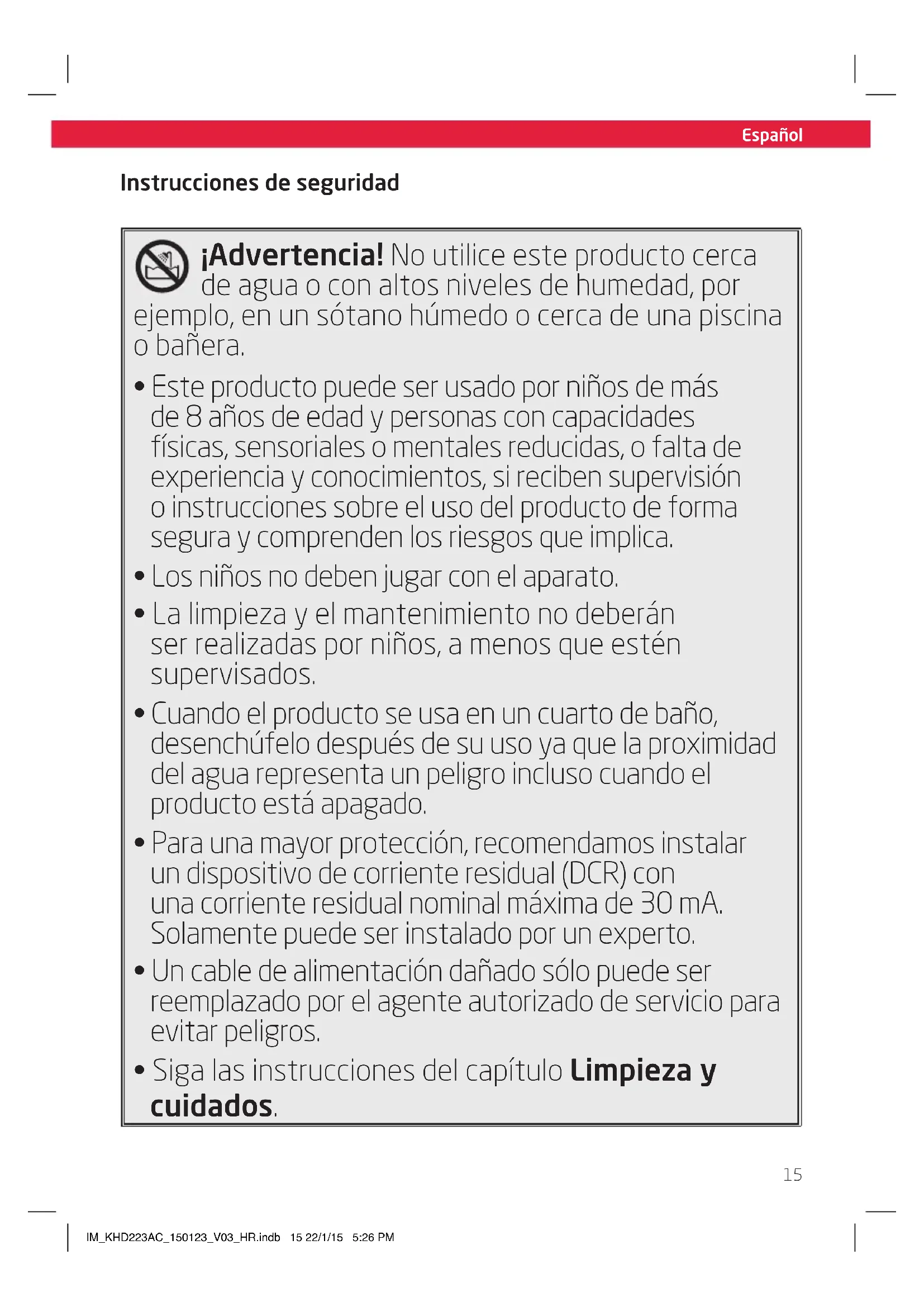 - Cuando el producto se usa en un cuarto de baño, desenchúfelo afterwards de su uso ya que la proximidad del agua representa un peligro incluso cuando el producto está apagado.