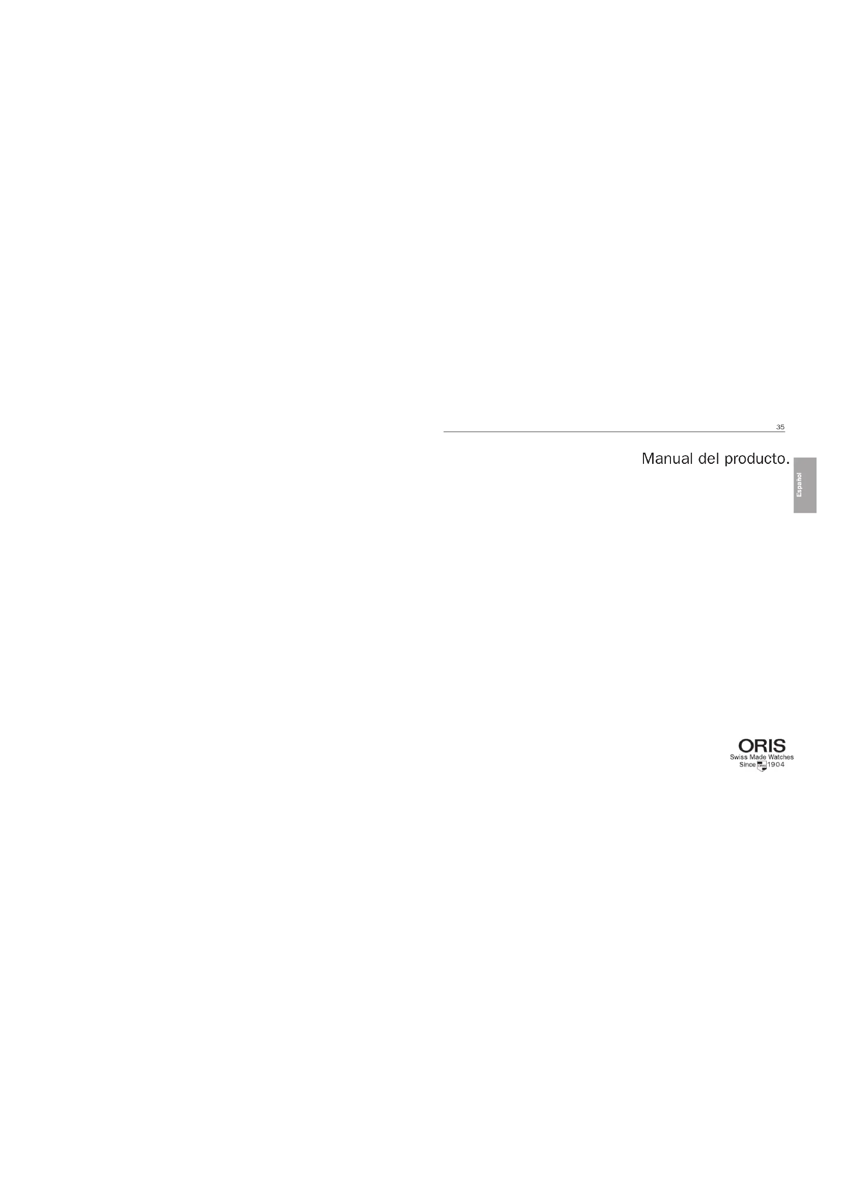 EspañolLe damos la enhorabuena por haber adquirido un reloj Oris y una cordial bienvenida al grupo de aficionados a los relojes mecáni- cos. Porque en el universo de Oris sólo existe la mecánica. Su reloj Oris, que se distingue de los productos de moda dirigidos al gran público por su interior micromecánico fascinante y su exterior elegante sin florituras, encarna los verdaderos valores del arte relojero suizo. Los relojes Oris no sólo son herederos de una larga tradición que se remonta a 1904, también albergan un dispo- sitivo High-Mech de una gran precisión caracterizado por el buen hacer artesanal de nuestros relojeros y desarrollado en colabo- ración con profesionales célebres del mundo de la Fórmula 1, del submarinismo y de la aviación. Y algo que es muy importante hoy en día: el reloj Oris obtiene toda la energía necesaria para su funcionmiento de forma ecológica, sin pila, sólo con sus movimientos o dándole cuerda manualmente. Consulte la web www.oris.ch para obtener más información y una ampliación gratuita de la garantía registrándose en el Club MyOris