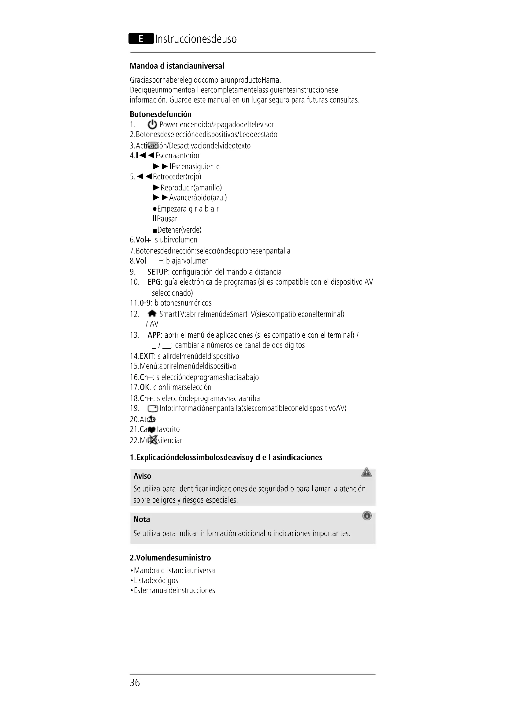 - Como todos los aparatos eléctricos, el mando adistancia universal no debe dejarse en manos de niños.