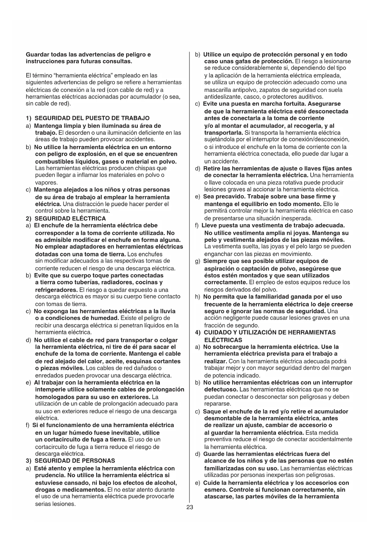 a) Esté atento y emplee la herramienta eléctrica con prudencia. No utilice la herramienta eléctrica si estuviese cansado, ni bajo los efectos de alcohol, drogas o medicamentos. El no estar atento durante el uso de una herramienta eléctrica puede provocarle serias lesiones.24 GENERAL