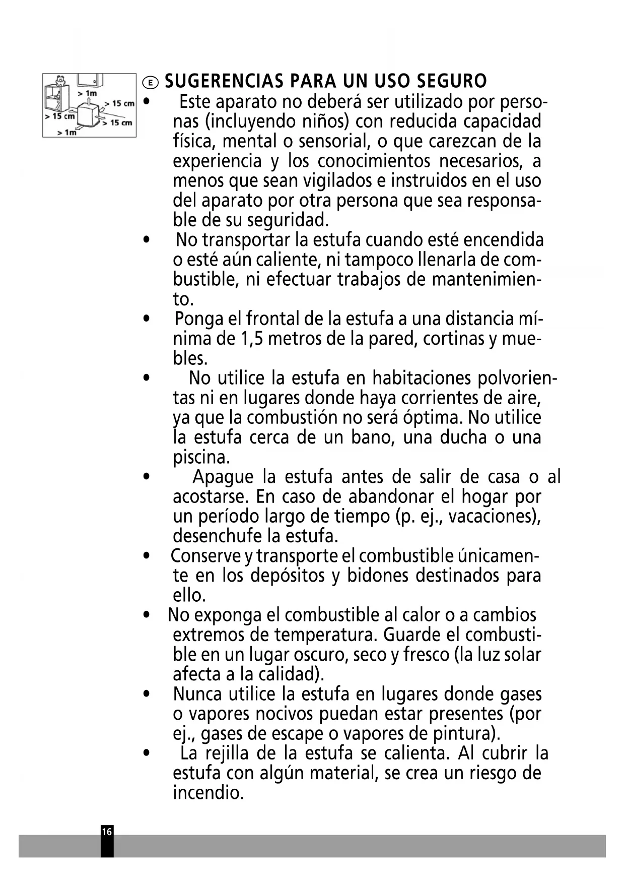 - Para evitar incendios, se debe llenar el depósito cuando la estufa está desconectada, o fuera de la habitación en la que se encuentre instalada la estufa.