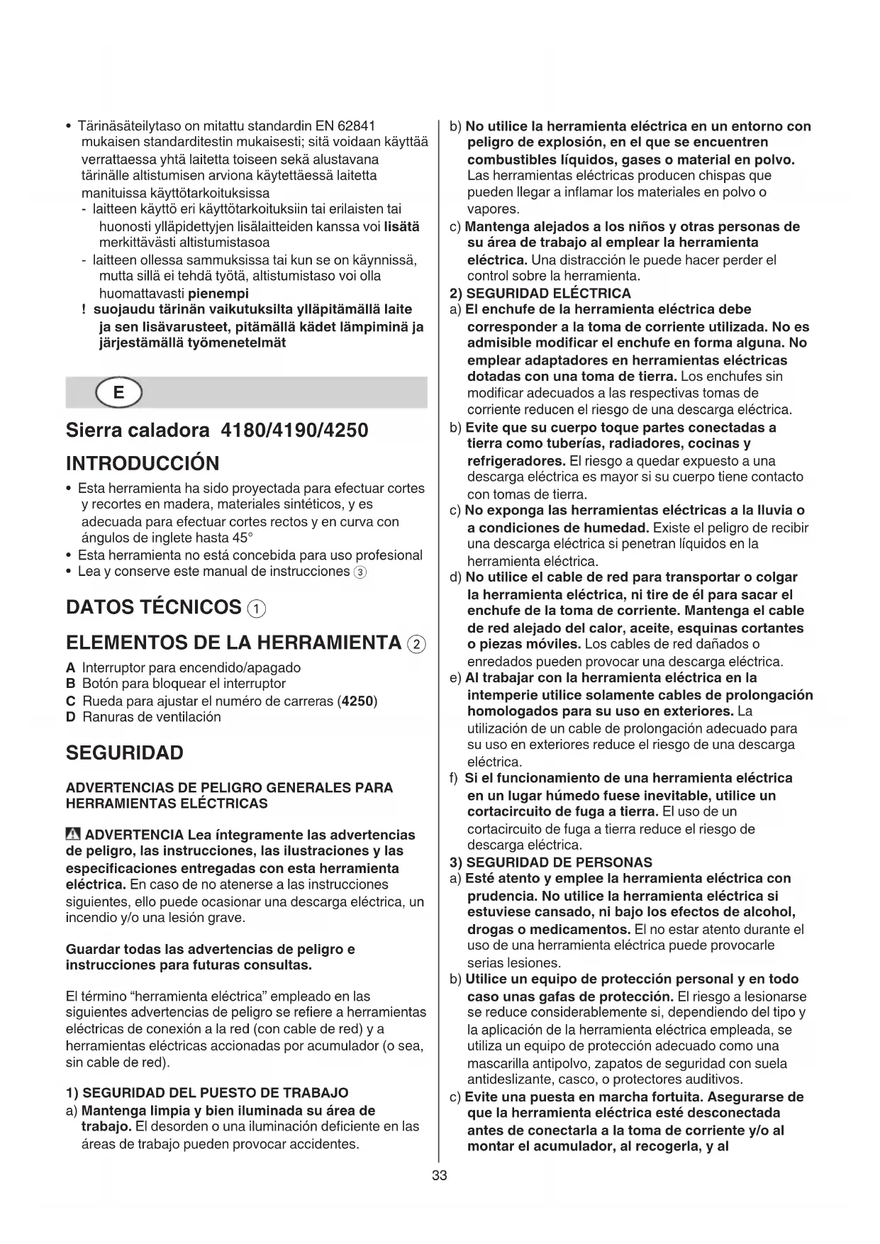 Sierra caladora 4180/4190/4250 INTRODUCCIÓN
