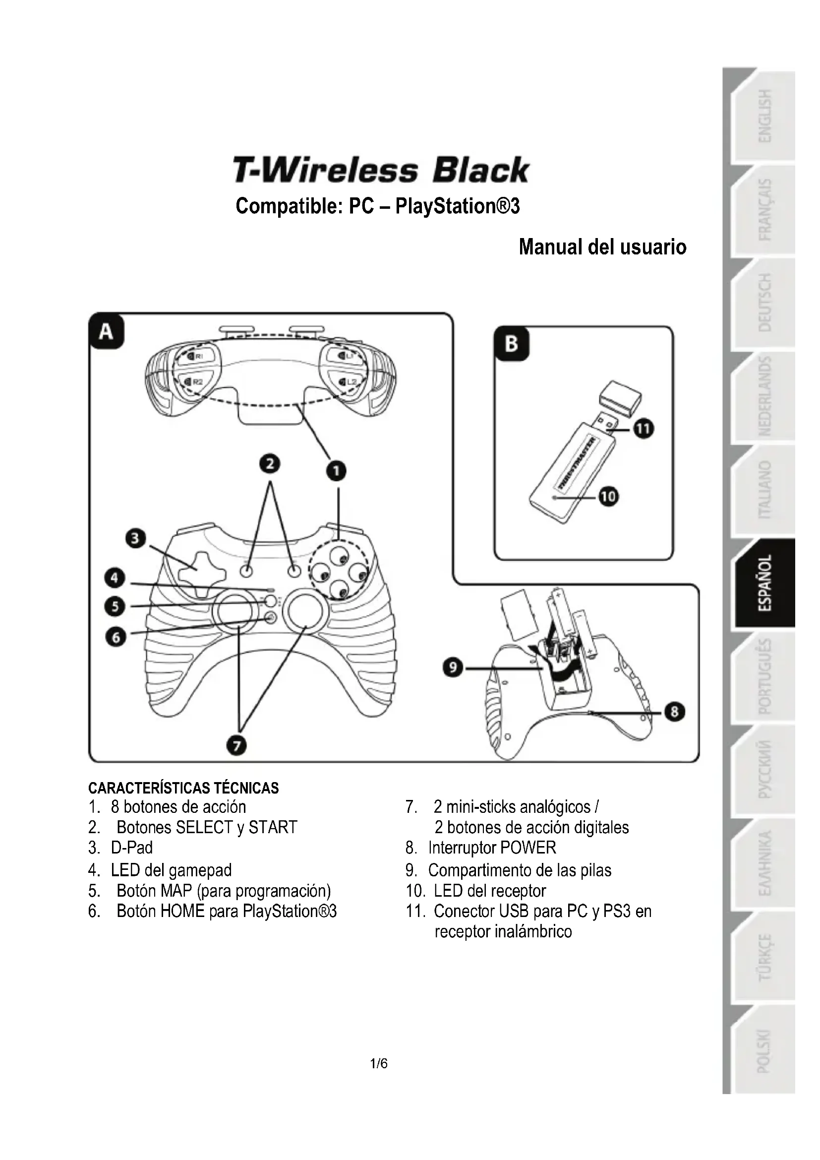 MANUAL DE USUARIO TWireless Black (PlayStation 3) THRUSTMASTER