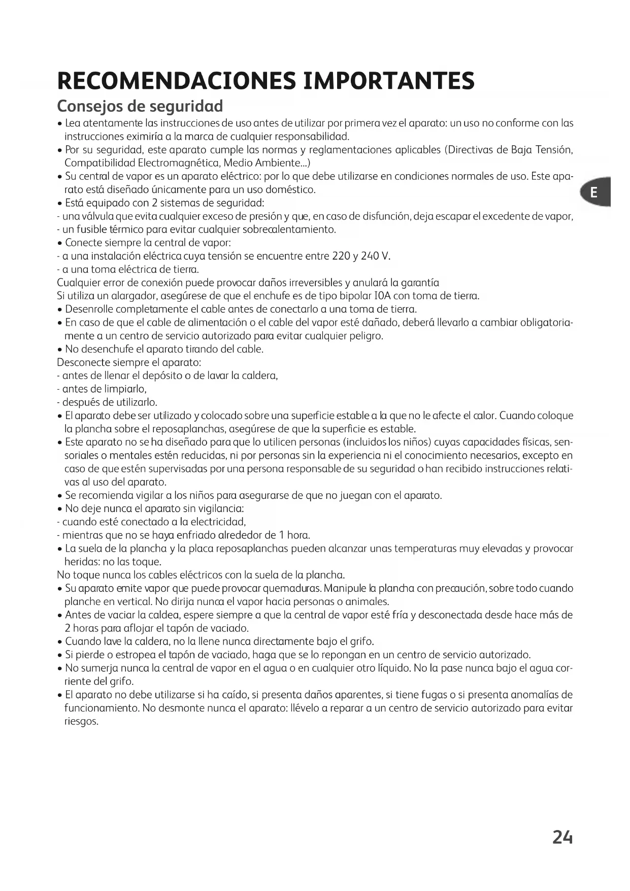 - Su central de vapor es un aparato eléctrico: por lo que debe utilizarse en condiciones normales de uso. Este apa- rato está diseñado únicamente para un uso doméstico.