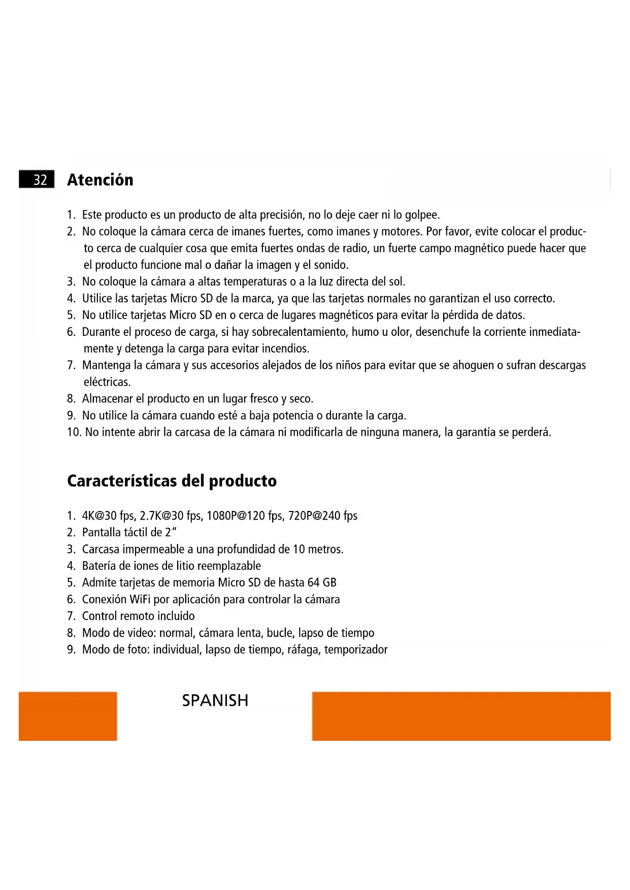 10. No intente abrir la carcasa de la cámara ni modificarla de ninguna manera, la garantía se perderá.