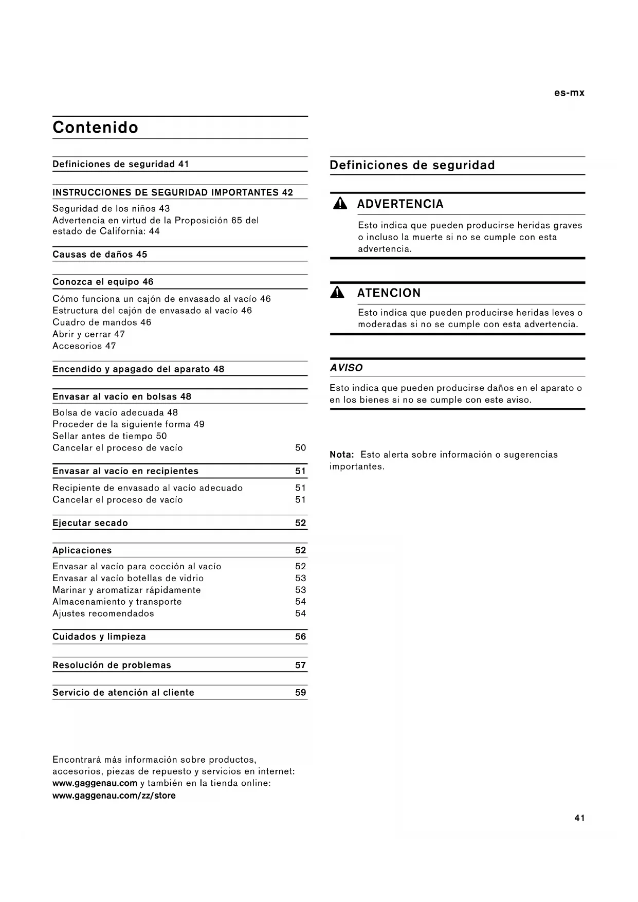 DV461710 - Máquinas de envasado al vacío GAGGENAU - Manual de uso y guía de instrucciones gratis