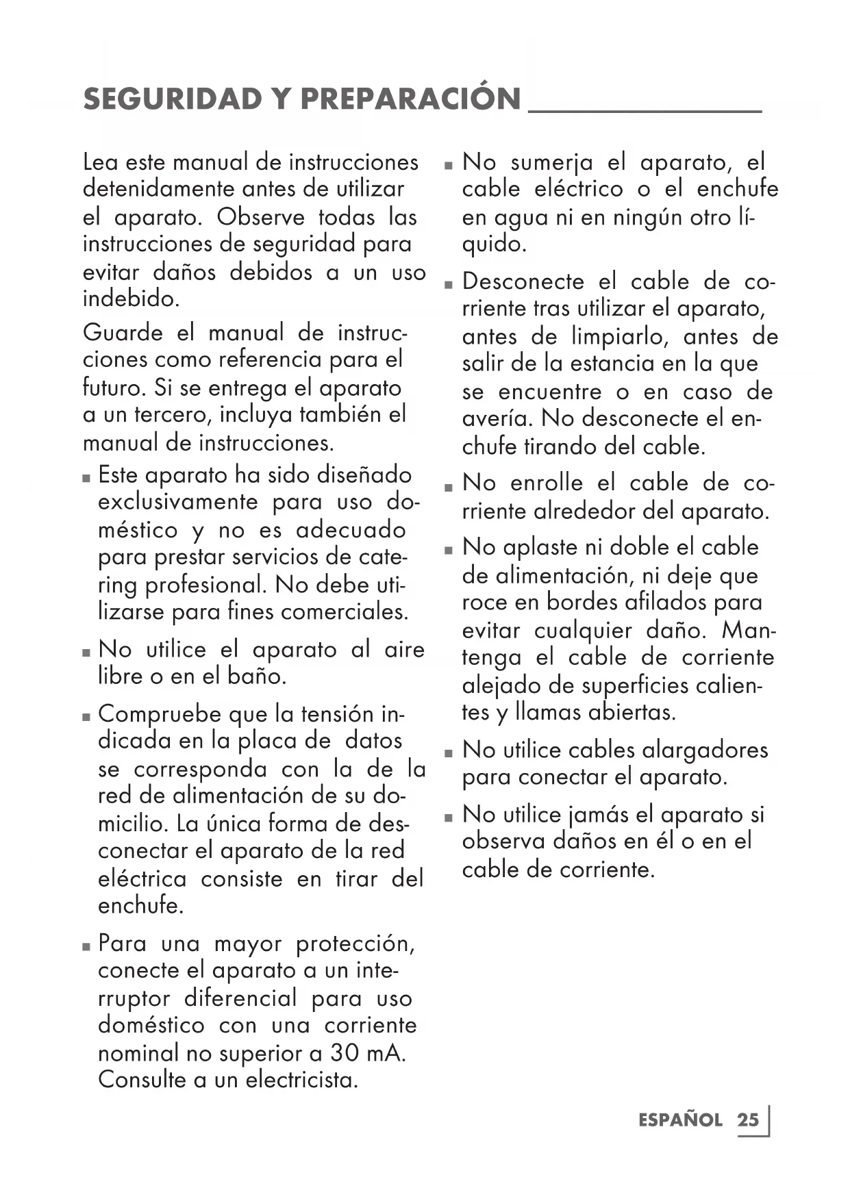 Lea este manual de instrucciones detenidamente antes de utilizar el aparato. Observe todas las instrucciones de seguridad para evitar daños debidos a un uso indebido. Guarde el manual de instruc- ciones como referencia para el futuro. Si se entrega el aparato a un tercero, incluya también el manual de instrucciones.