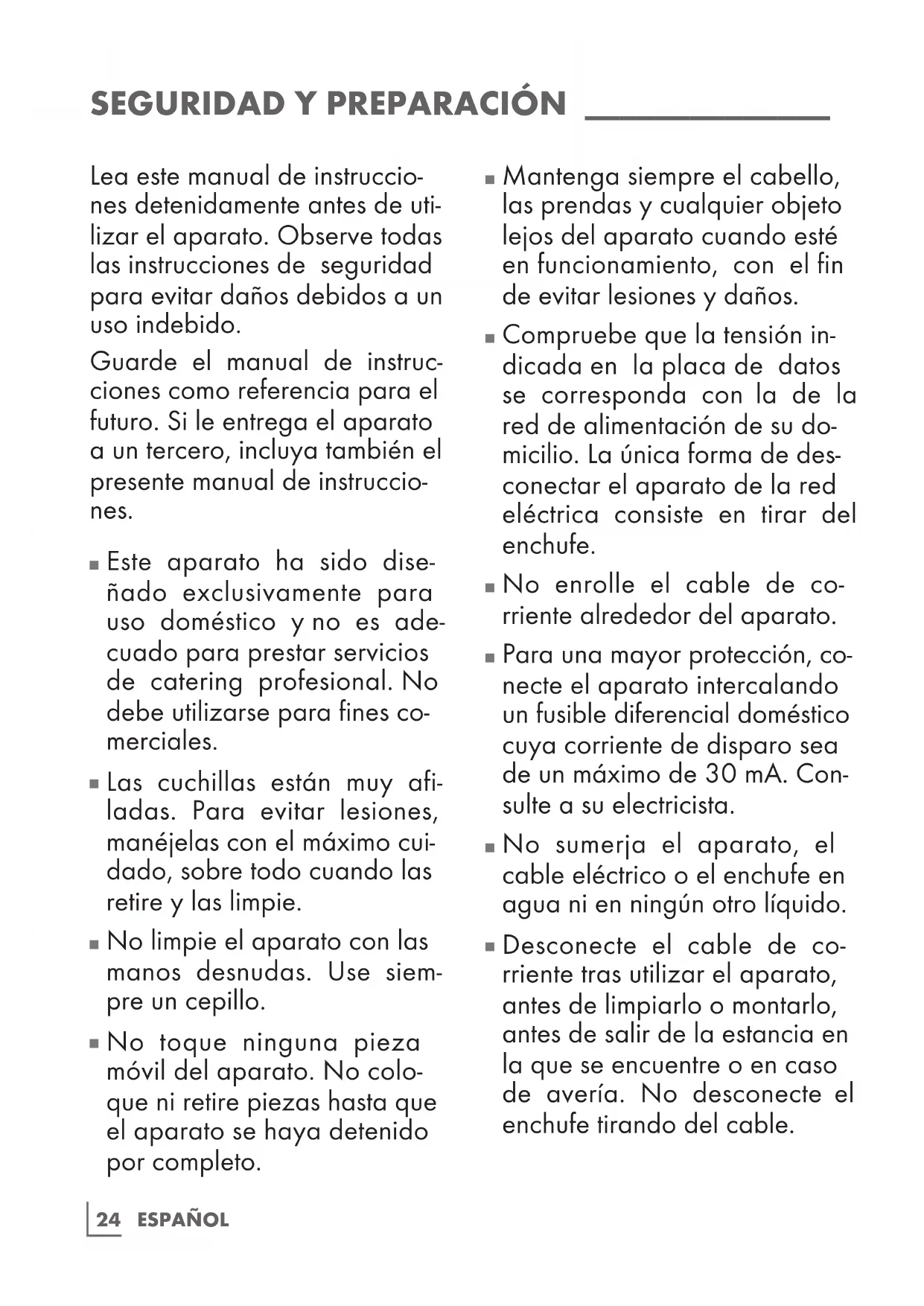 Lea este manual de instruccio- nes detenidamente antes de uti- lizar el aparato. Observe todas las instrucciones de seguridad para evitar daños debidos a un uso indebido. Guarde el manual de instruc- ciones como referencia para el futuro. Si le entrega el aparato a un tercero, incluya también el presente manual de instruccio- nes.