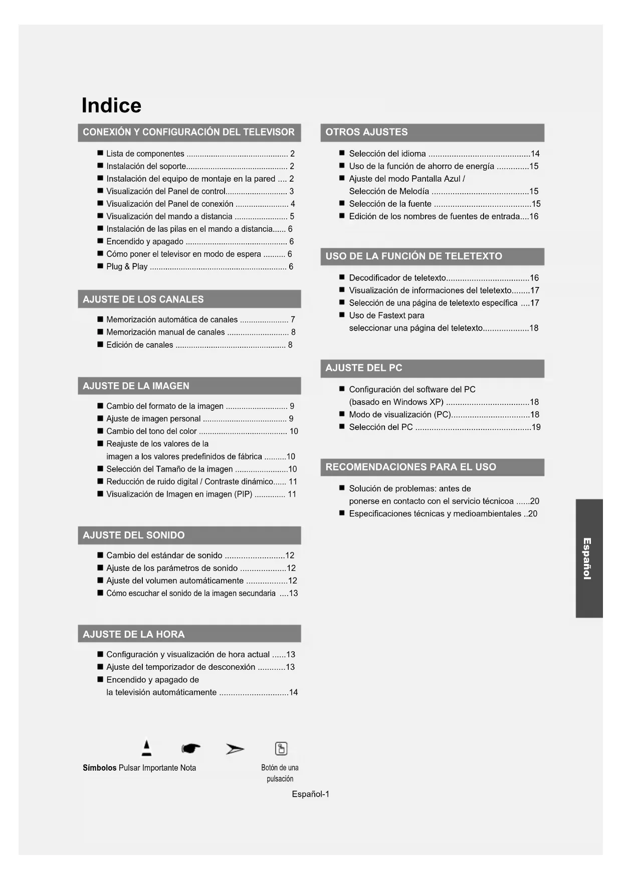 - Encendido y apagado de la televisión automáticamente p. 14