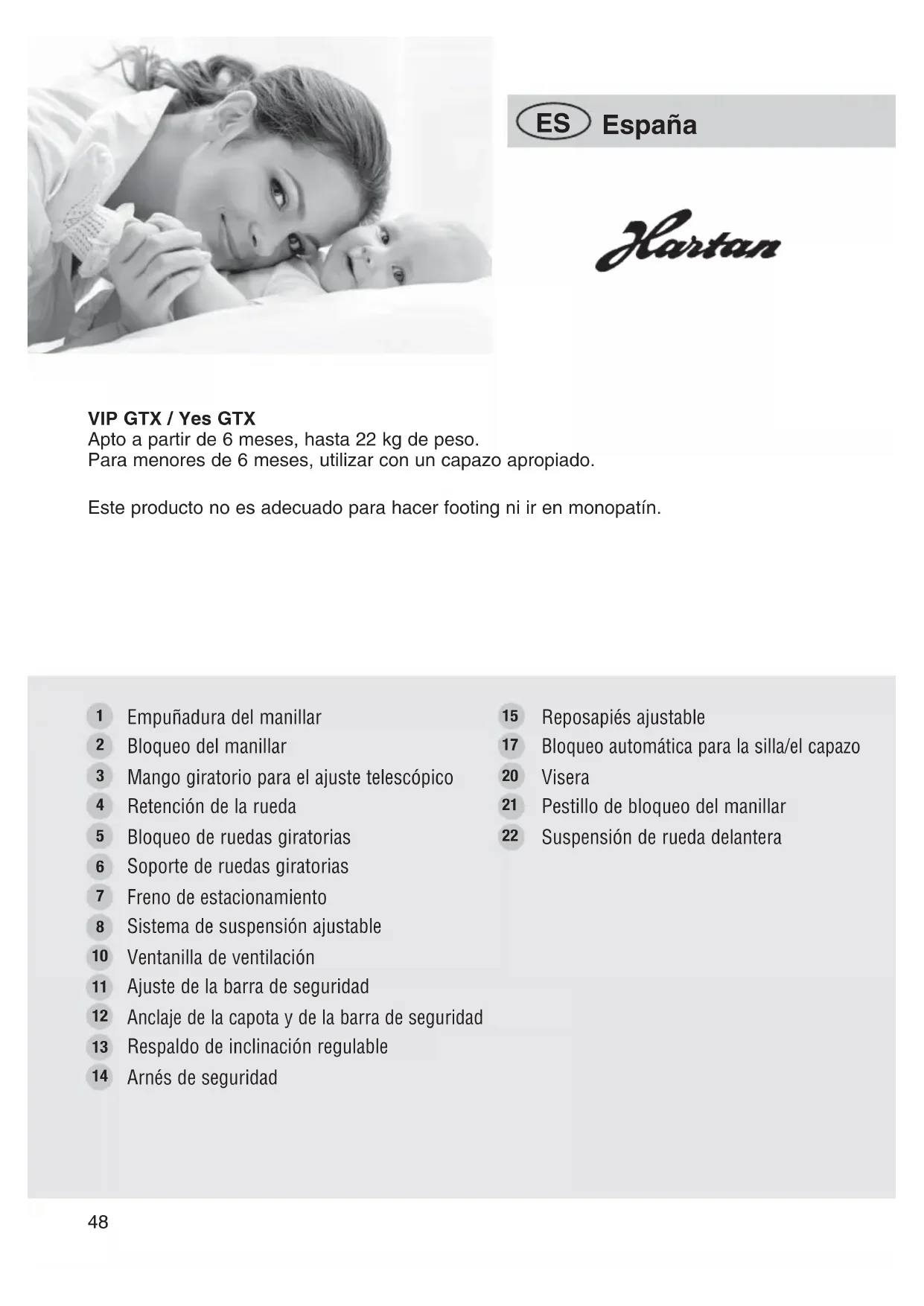Descarga las instrucciones para tu Paseante en formato PDF gratis! Encuentra tus instrucciones Yes GTX - HARTAN y toma tu dispositivo electrónico nuevamente en la mano. En esta página están publicados todos los documentos necesarios para el uso de su dispositivo. Yes GTX de la marca HARTAN.