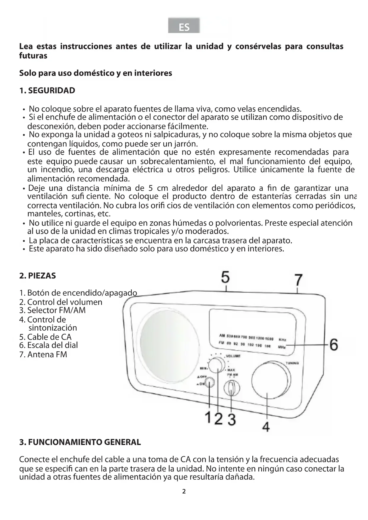 - Este aparato ha sido diseñado solo para uso doméstico y en interiores.