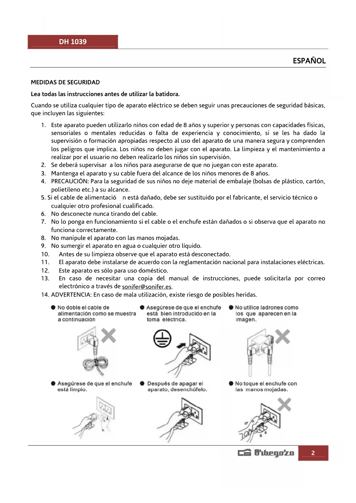 MANUAL DE USUARIO DH 1039 Orbegozo