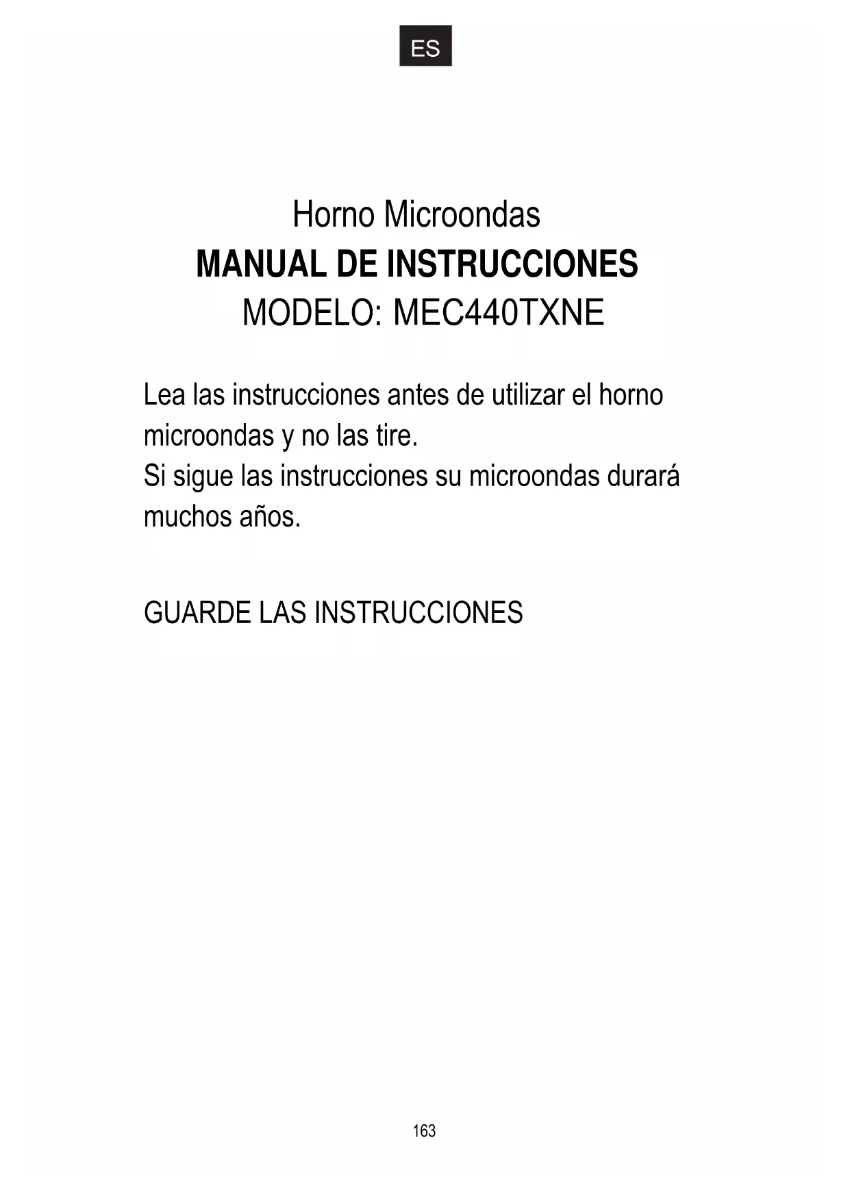 Lea las instrucciones antes de utilizar el horno microondas y no las tire. Si sigue las instrucciones su microondas durará muchos años.