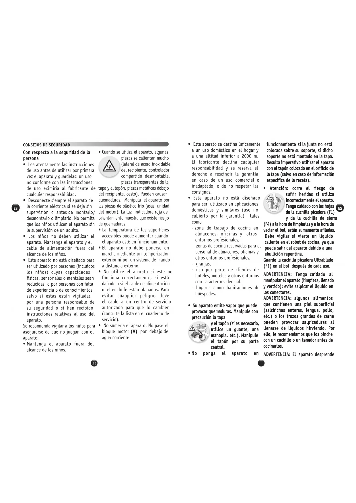 (F4) a la hora de limpiarlas y a la hora de vaciar el bol, está sumamente aflidas. Debe vigilar si vaerte un liquido caliente en el robot de cocina, ya que pueda salir del aparato bajo a una ebullicion repentina.