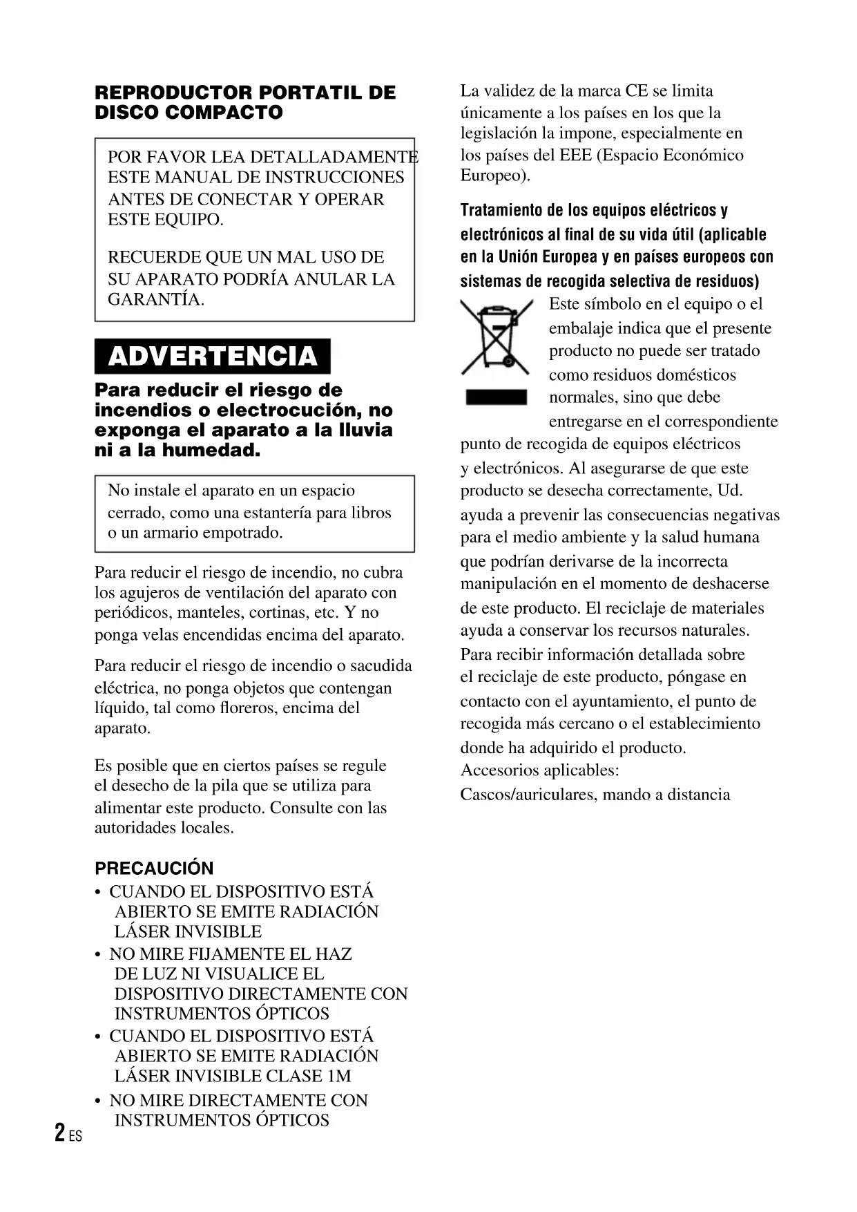 Es possible que en ciertos países se regule el desecho de la pila que se utilizes para alimentar este producto. Consulte con las autoridades locales.