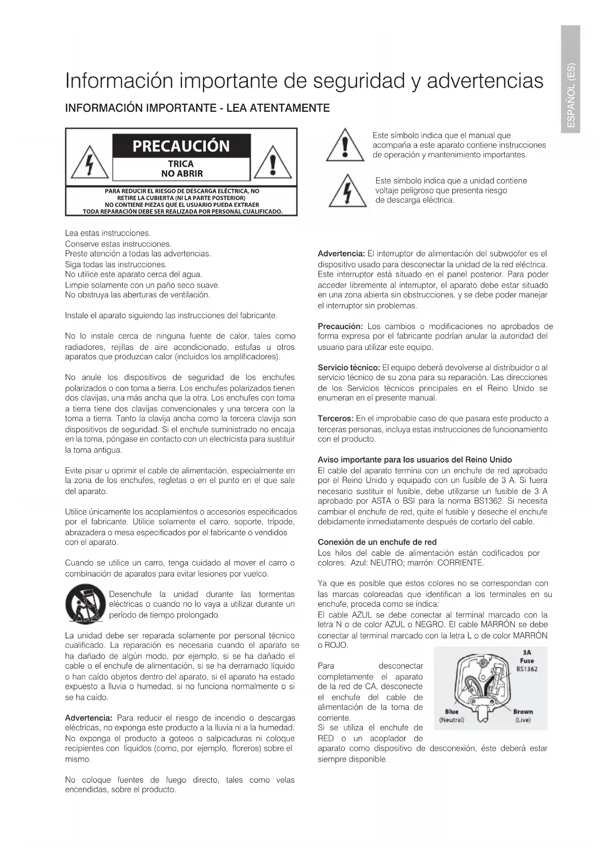 ESPAÑOL (ES) Información importante de seguridad y advertencias