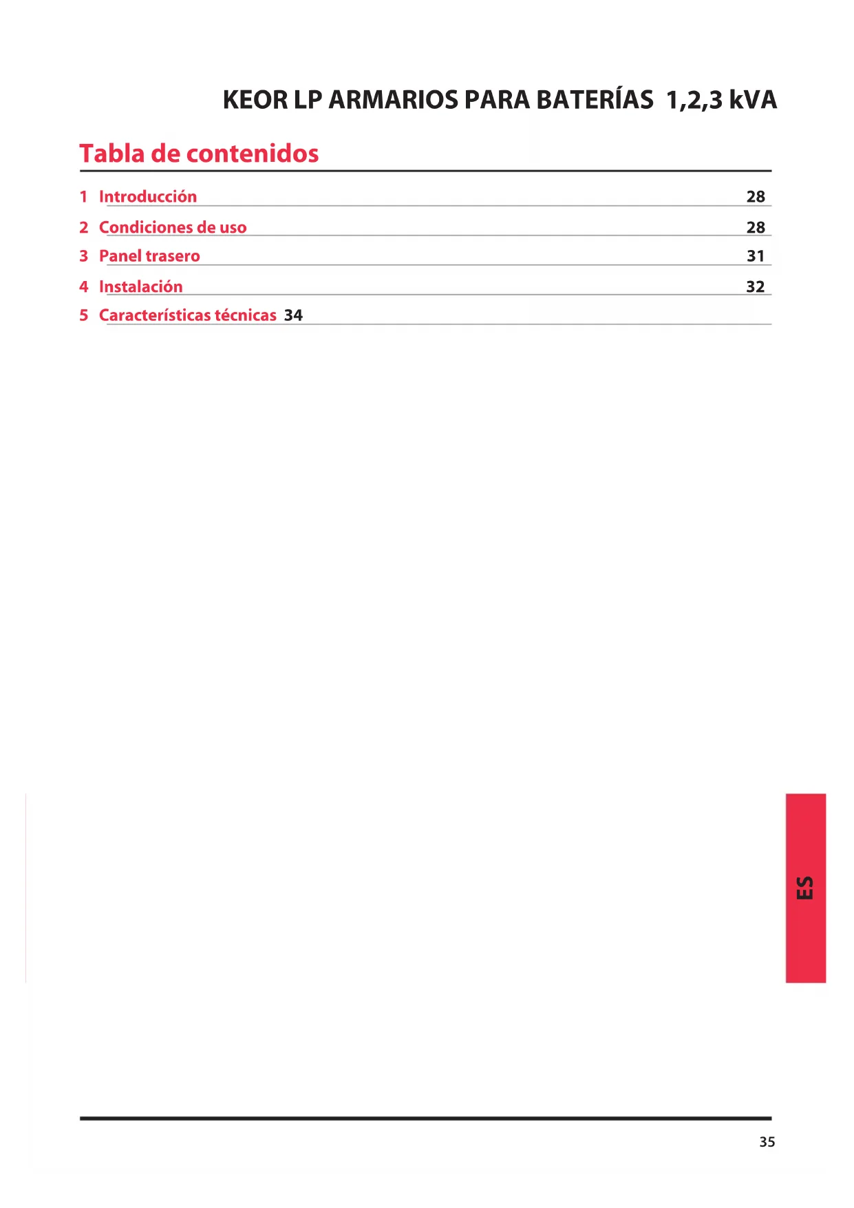 Tabla de contenidos 1 Introducción 28 2 Condiciones de uso 28 3 Panel trasero 31 4 Instalación 32 5 Características técnicas 3436