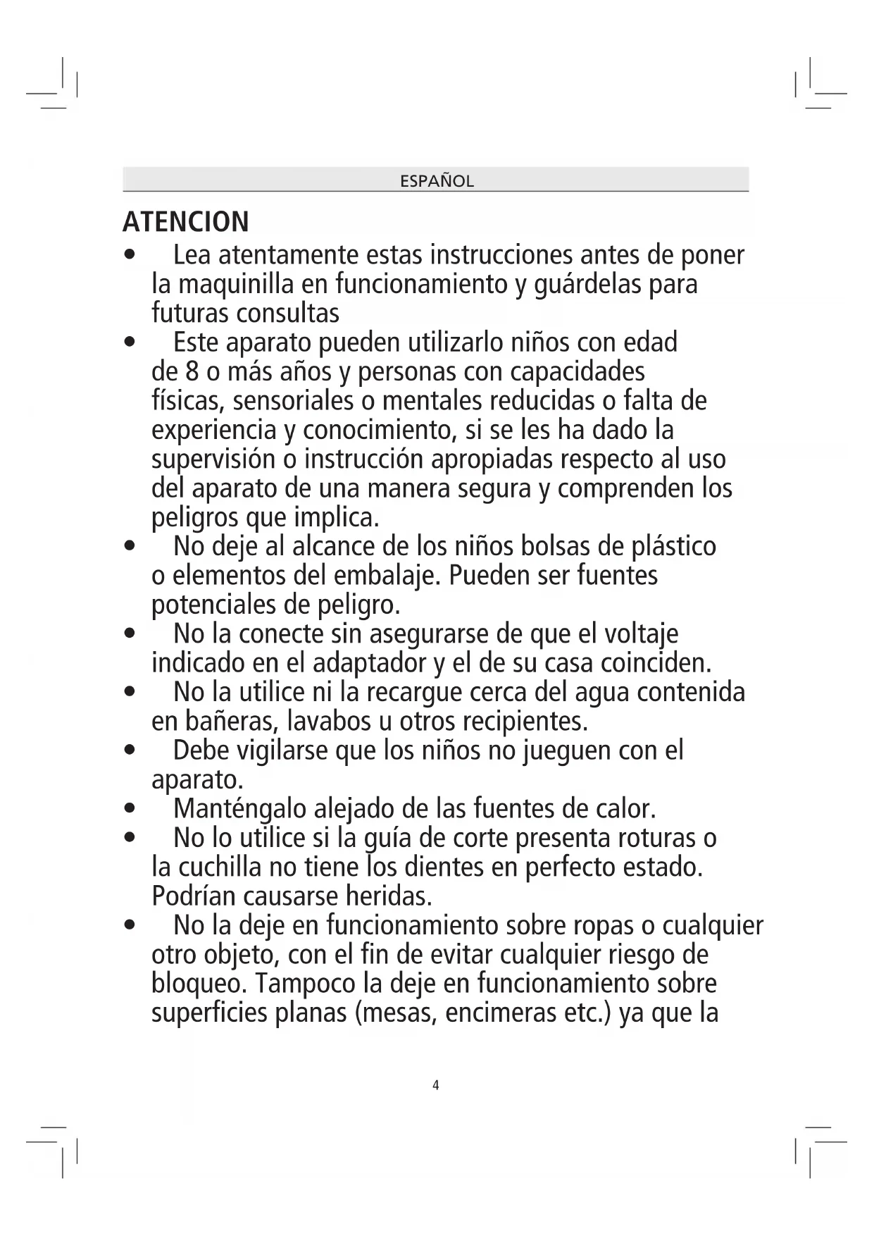 - Lea atentamente estas instrucciones antes de poner la maquinilla en funcionamiento y guárdelas para futuras consultas