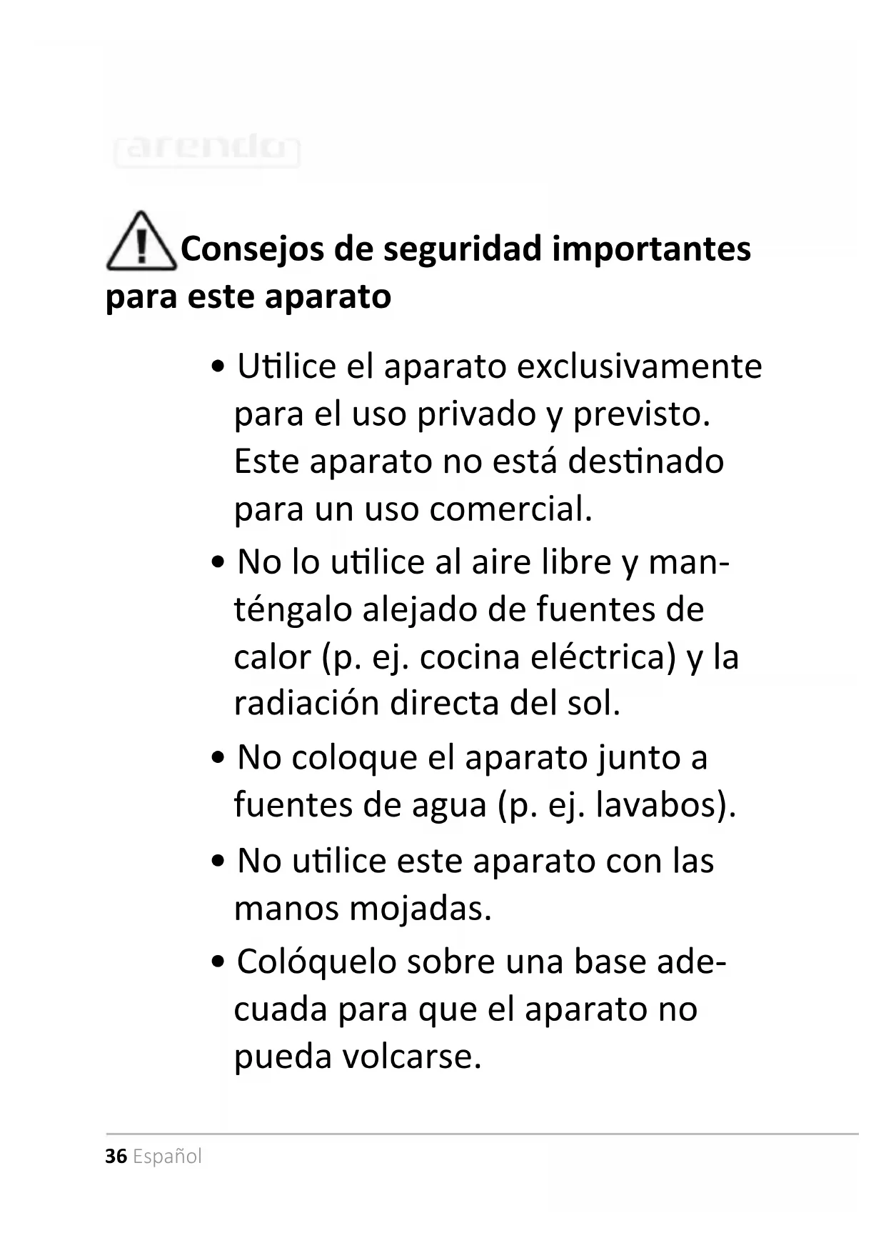- Los menores pueden limpiar o ulizar el disposivo, única- mente bajo la supervisión y la guía de un adulto.41Español Muchas gracias por haberse decidido por un producto de Arendo. Para que pueda disfrutar durante mucho empo del aparato adquirido, le recomendamos que lea atentamente las siguientes instrucciones. Antes de la puesta en servicio de la mercancía suministrada, compruebe que esté completa e intacta.