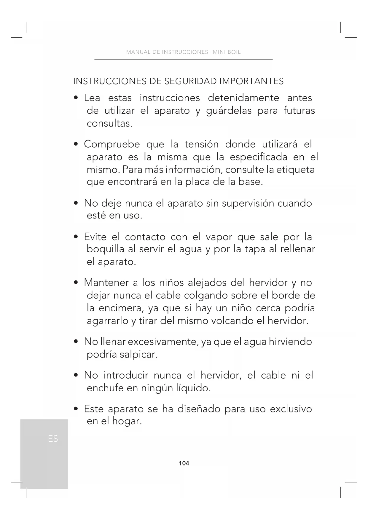 - Mantener a los niños alejados del hervidor y no dejar nunca el cable colgando sobre el borde de la encimera, ya que si hay un niño cerca podría agarrarlo y tirar del mismo volcando el hervidor.