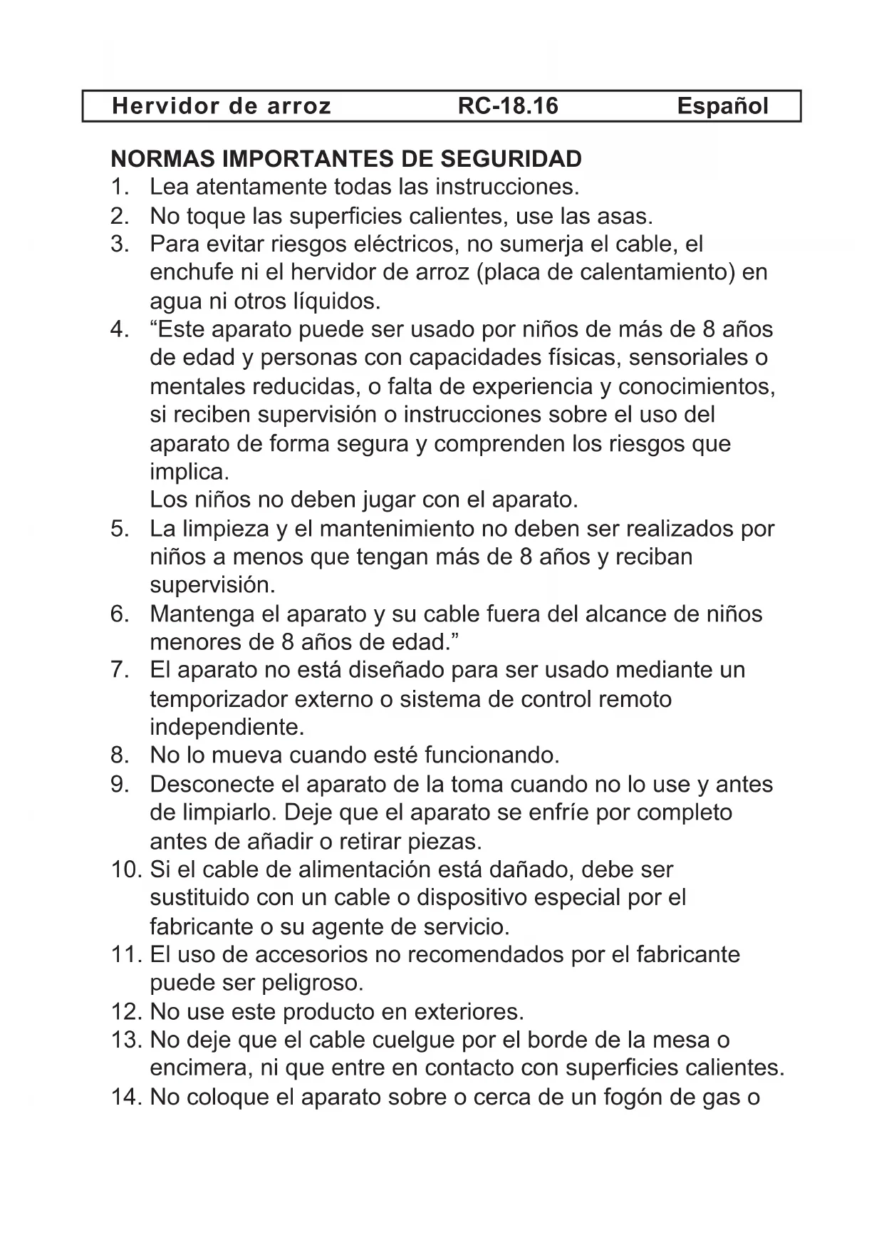 que contenga aceite u otros líquidos calientes. [Y%'?'' de corriente, no a cables extensores. Para desconectar, tire del enchufe, no del cable.