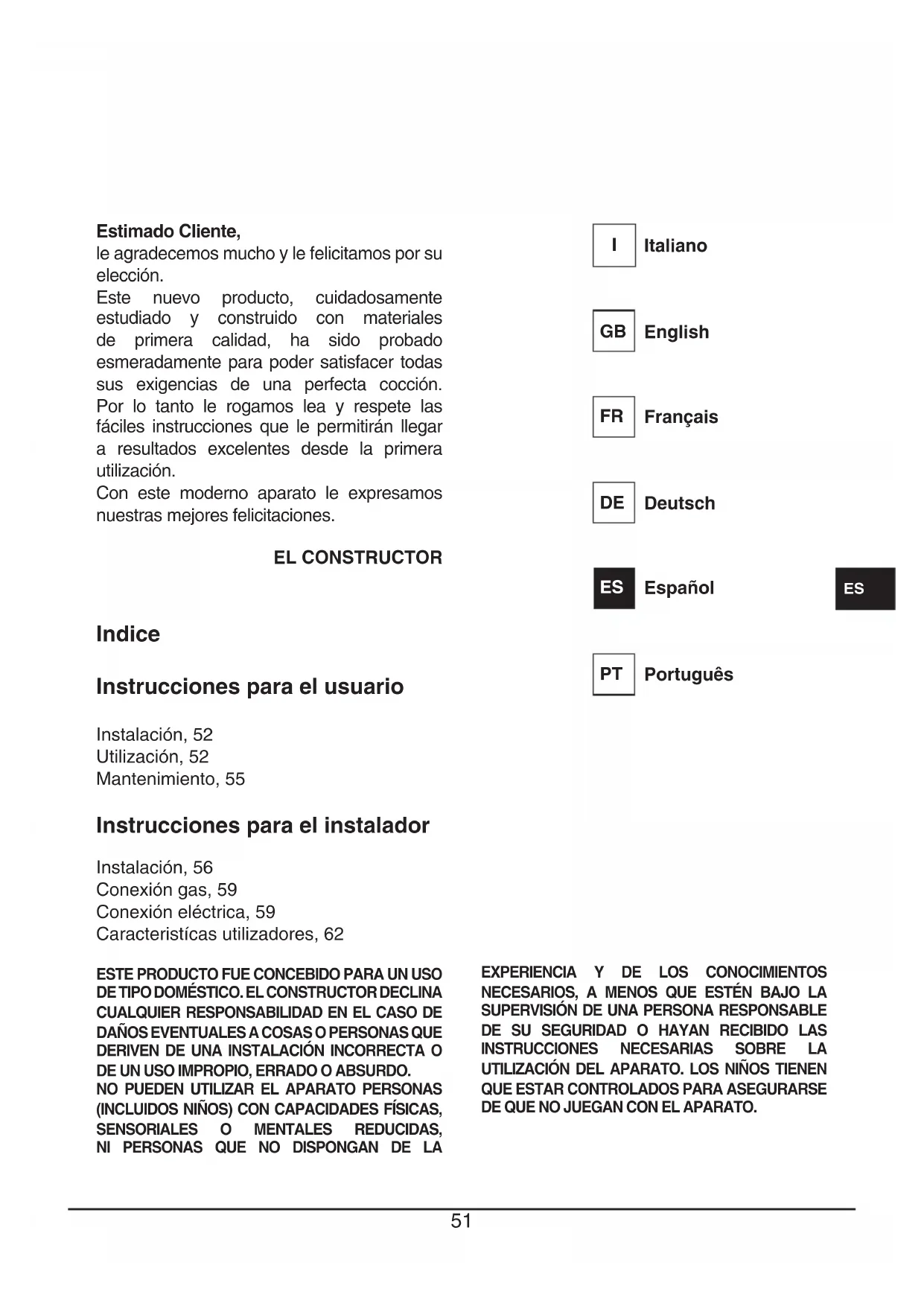 Este nuevo producto, cuidadosamente estudiado y construido con materiales de primera calidad, ha sido probado esmeradamente para poder satisfacer todas sus exigencias de una perfecta cocción. Por lo tanto le rogamos lea y respete las fácilas instrucciones que le permitiránURTAR a resultados excellentes desdela primerautilizacion.