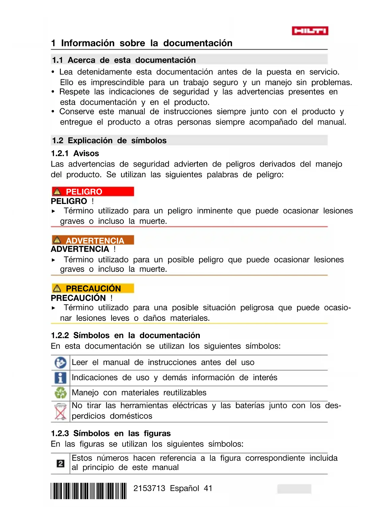 adecuada de los materiales. En manyos paises, Hilti recoge las herramrientas usadas para su recuperacion. Pregunte en el Servicio de Atencion al CLIENTe de Hilti o a su asesor de ventas.