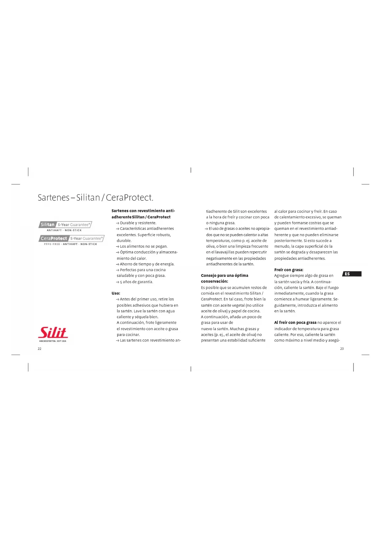 - Las sartenes con revestimiento an- tiadherente de Silit son excelentes a la hora de freír y cocinar con poca o ninguna grasa.