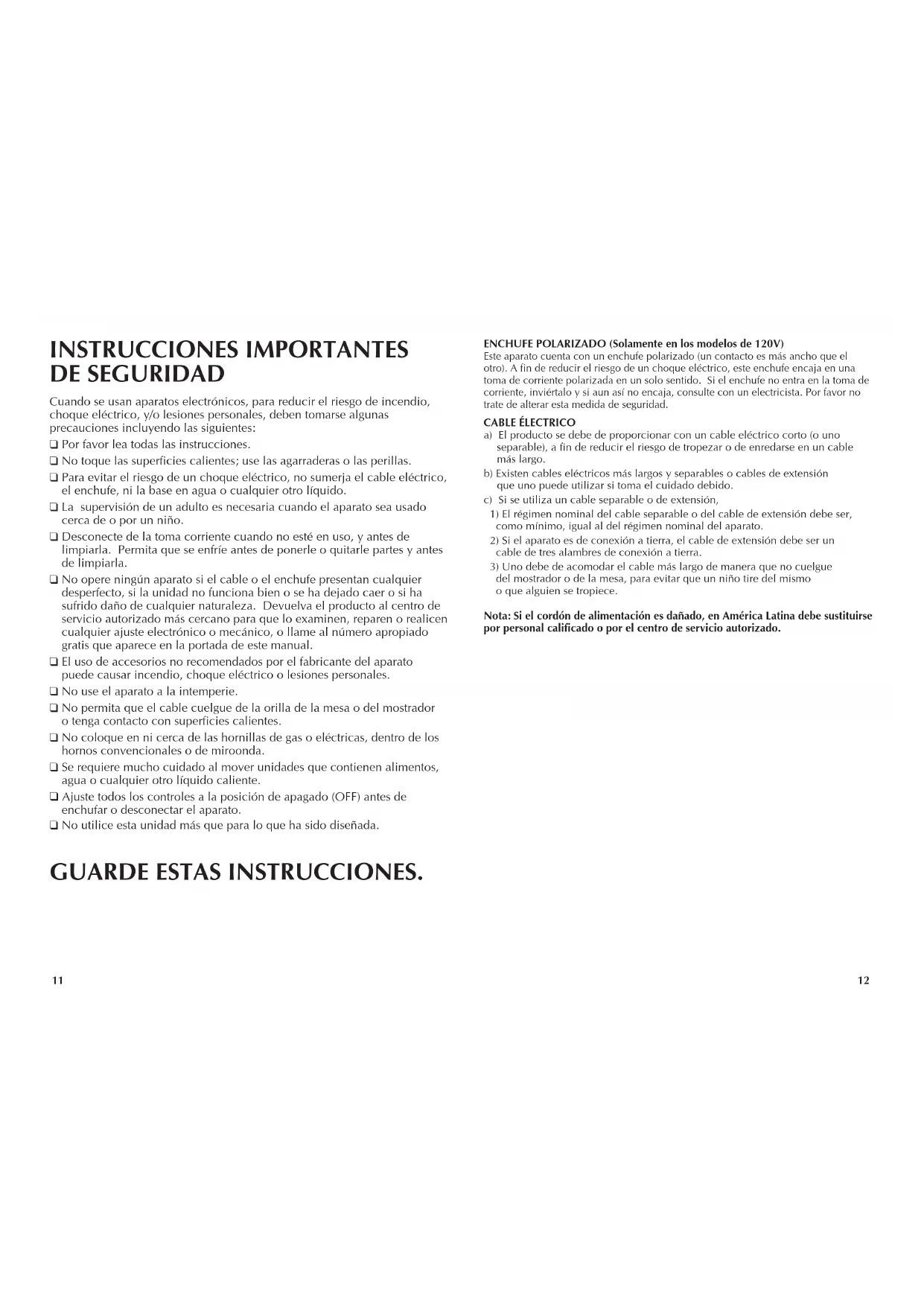 GUARDE ESTAS INSTRUCCIONES.