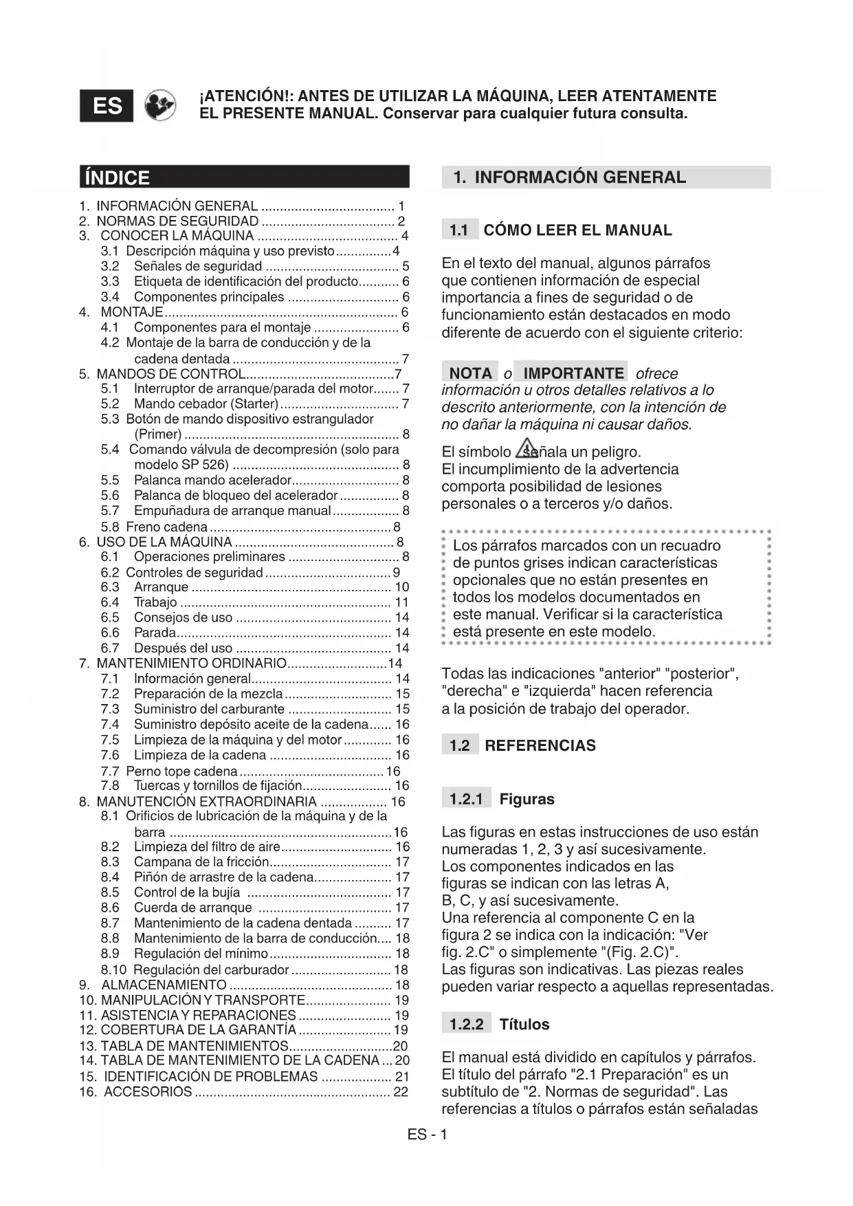 16. ACCESORIOS ..................................................... 22ES - 2