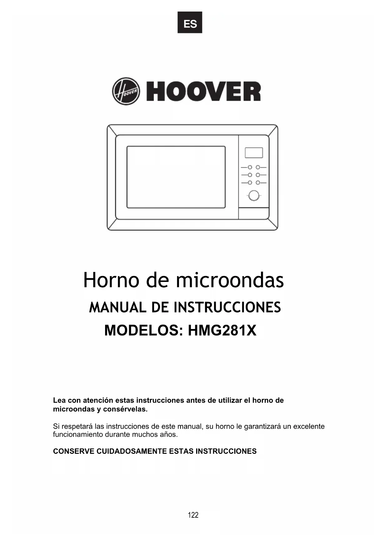 HMG281X - Microondas HOOVER - Manual de uso y guía de instrucciones gratis