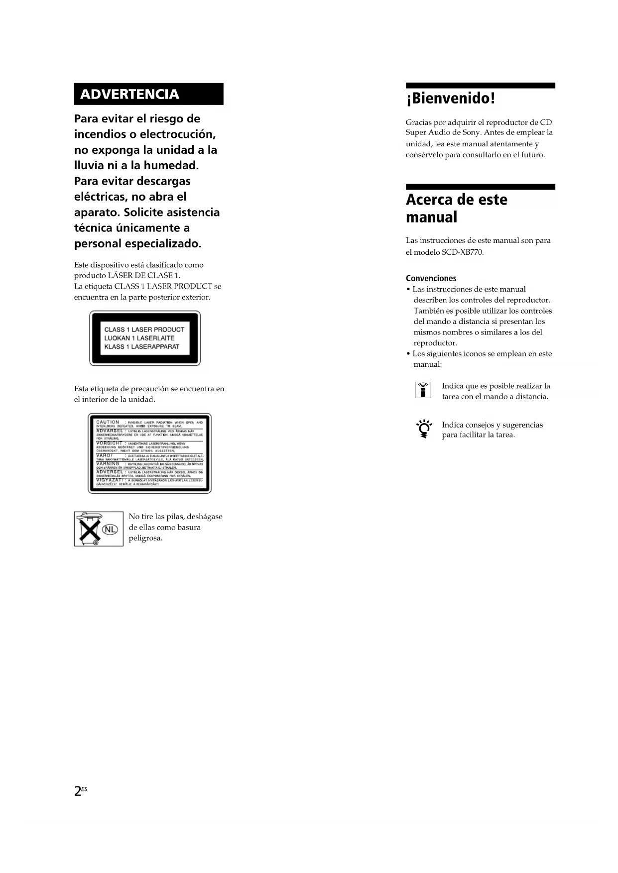 Gracias por adquirir el reproductor de CD Super Audio de Sony. Antes deemployar la unidad,lea estemanual atentamente y conservelo para consultarlo en el futuro.