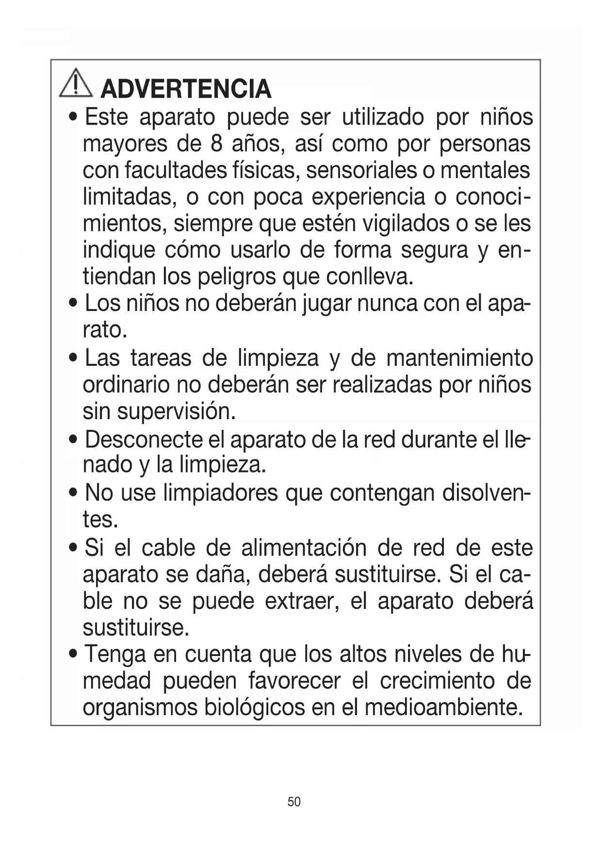 - Este aparato puede ser utilisé por niños mayores de 8 años, asi como por personas con facultades físicas, sensoriales o mentales limitadas, o conotta experiencia o conocimientos, siempre que estén vigilados o se les indique como usarlo de forma segura yeniendan los peligros que conlleva.