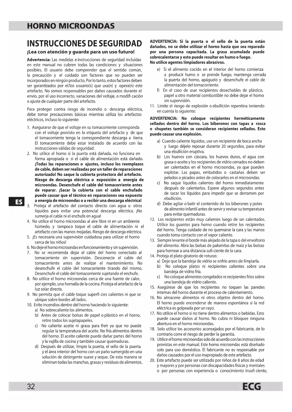 MTD 2004 BA - Microondas ECG - Manual de uso y guía de instrucciones gratis
