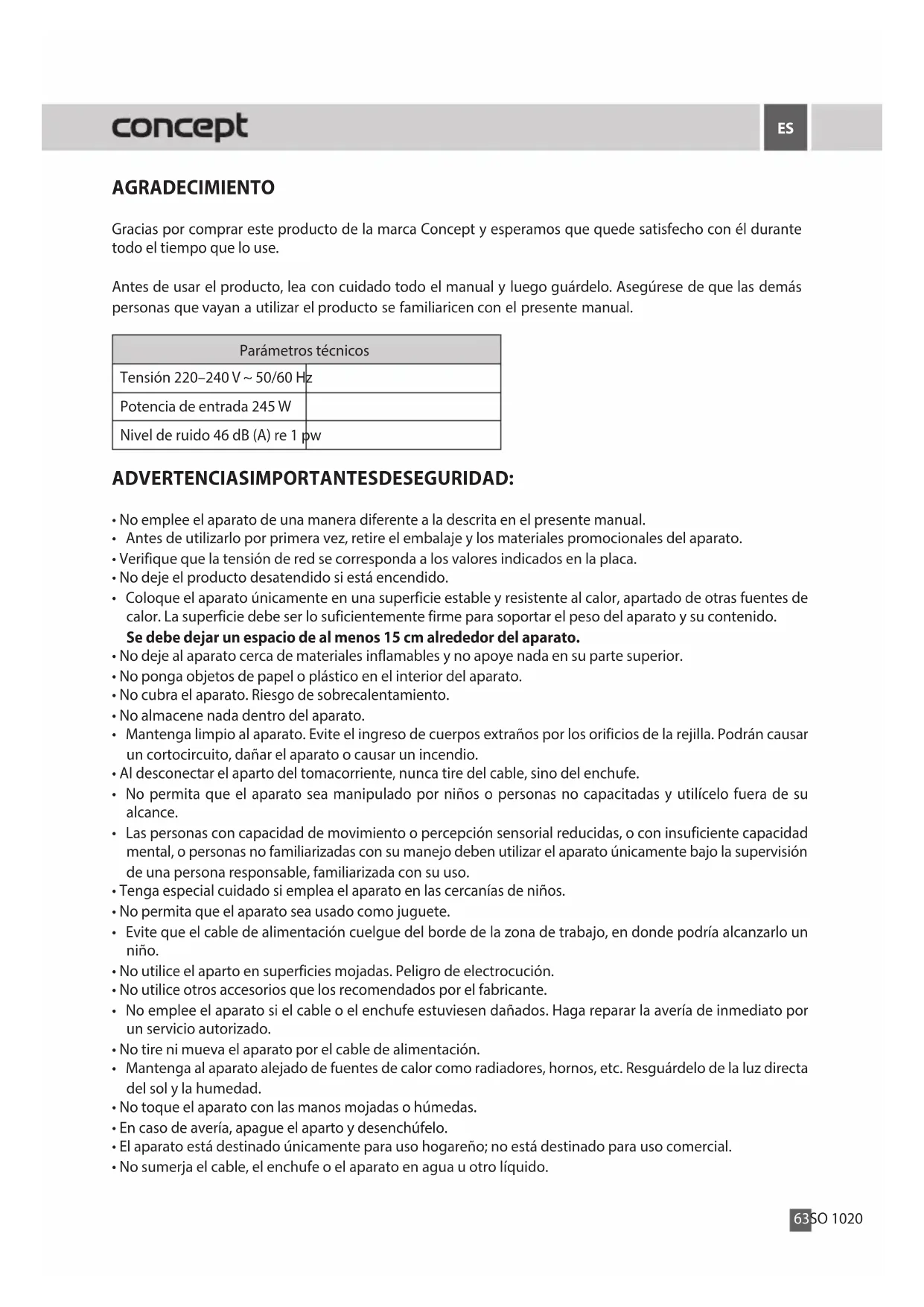 Encuentra gratis el manual del aparato SO1020 Concept en formato PDF.